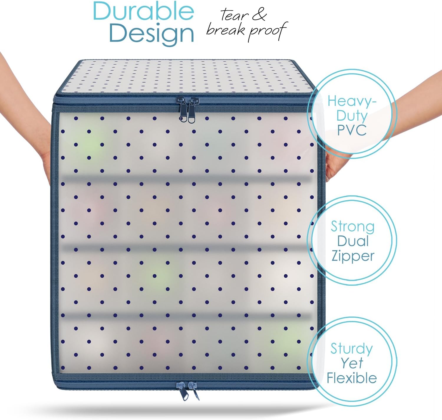 - Easy Id – Searching through the attic or garage to find your Christmas decorations is a real pain. These Christmas ornament storage containers have a clear slot to slip a card into so you can quickly identify what’s inside.