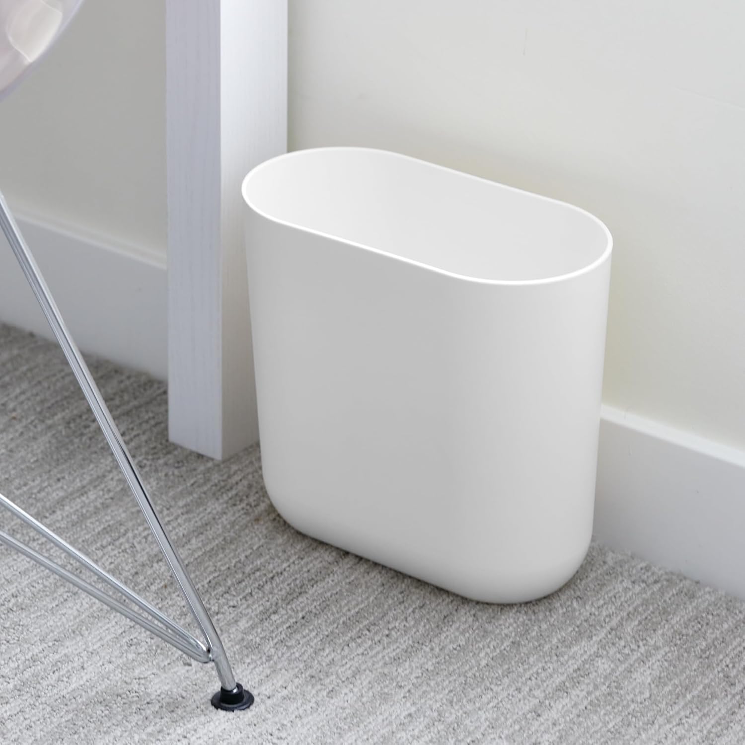 - MODERN STYLE - The white color, oval shape, and rounded base bring an elevated look to this everyday household essential, making it the perfect finishing touch to any bathroom or home office; Its slim dimensions tuck into the slimmest of spaces throughout the home