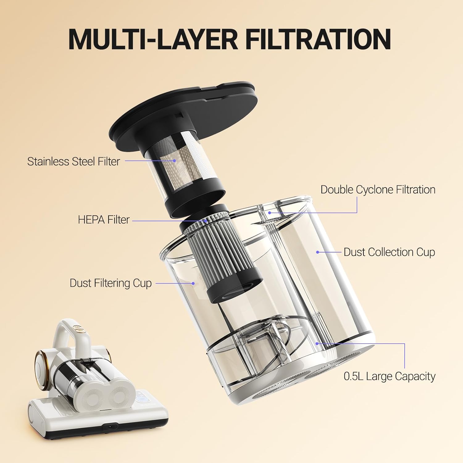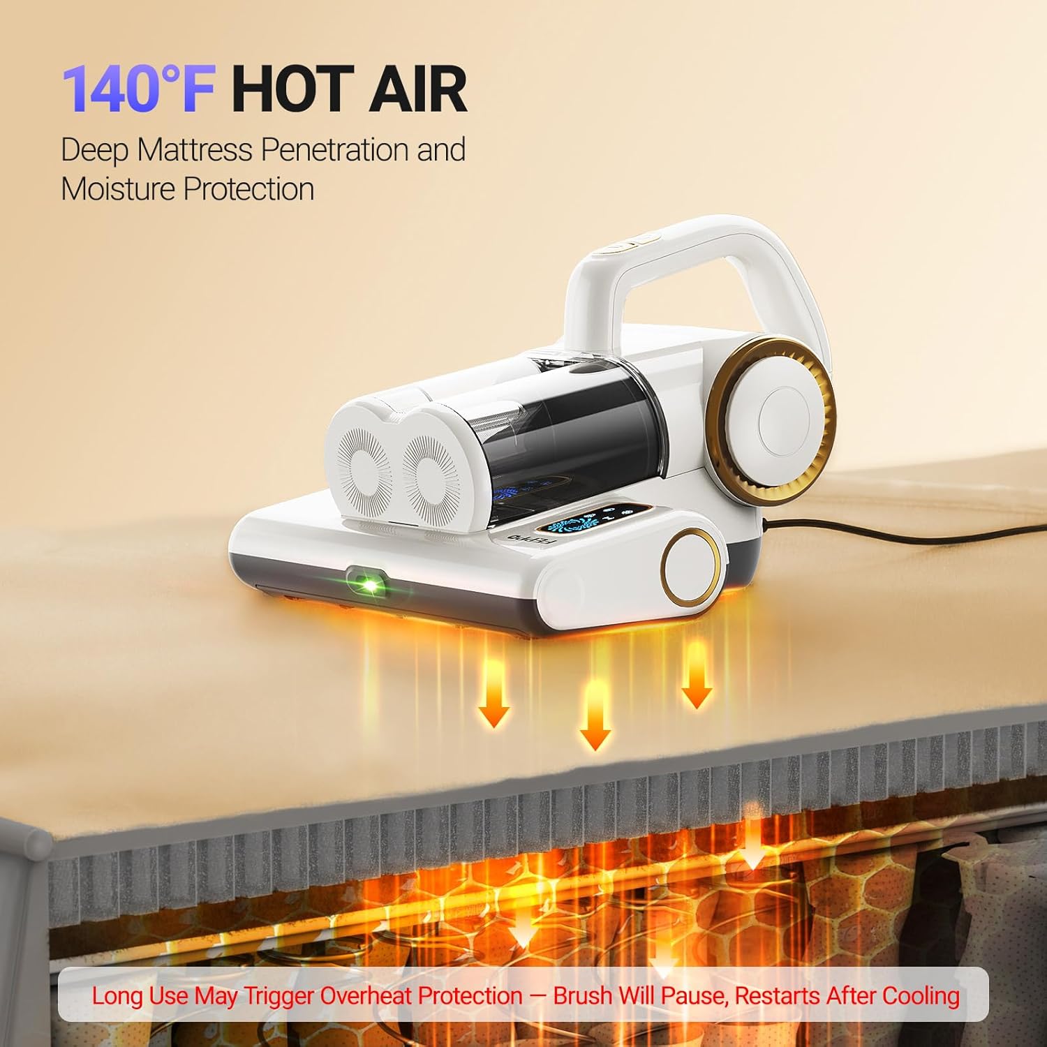 - 【High-Efficiency Deep Cleaning】Our UV mattress vacuum cleaner features a powerful 500W motor, providing 16kPa of strong suction and 30,000 RPM high-frequency tapping. It penetrates deeply into mattresses and fabric layers, effectively removing fine dust, skin flakes. Keep your mattress and sofa consistently fresh and clean, creating a healthier sleep environment and allowing you to enjoy a healthier home life. (NOTE: Not suitable to absorb pet hair)