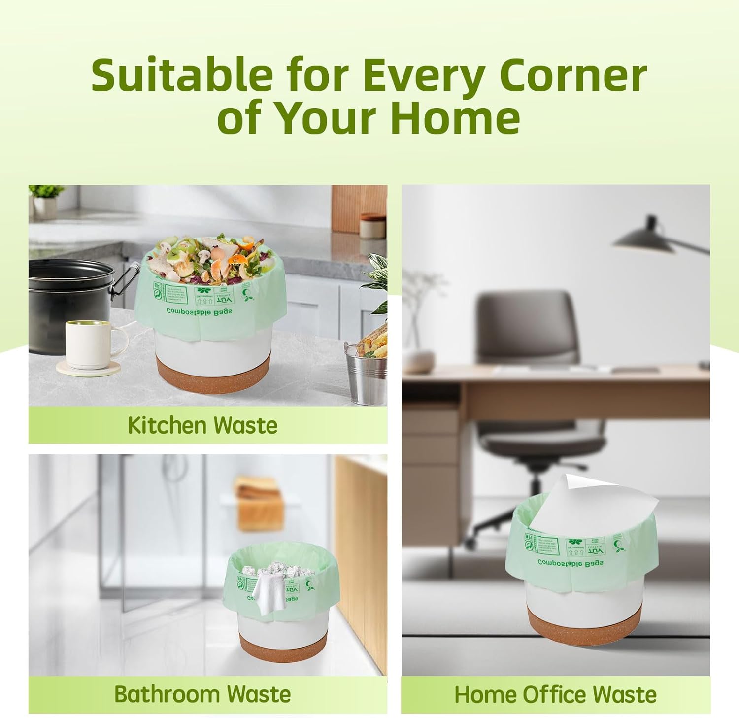 - [CERTIFIED COMPOSTABLE]: These compostable trash bags are ASTM D6400 certified, providing an environmentally responsible solution for food waste and composting. When opening the package, you may notice a subtle, pleasant scent—this is the natural aroma of cornstarch, a key ingredient in these bags.