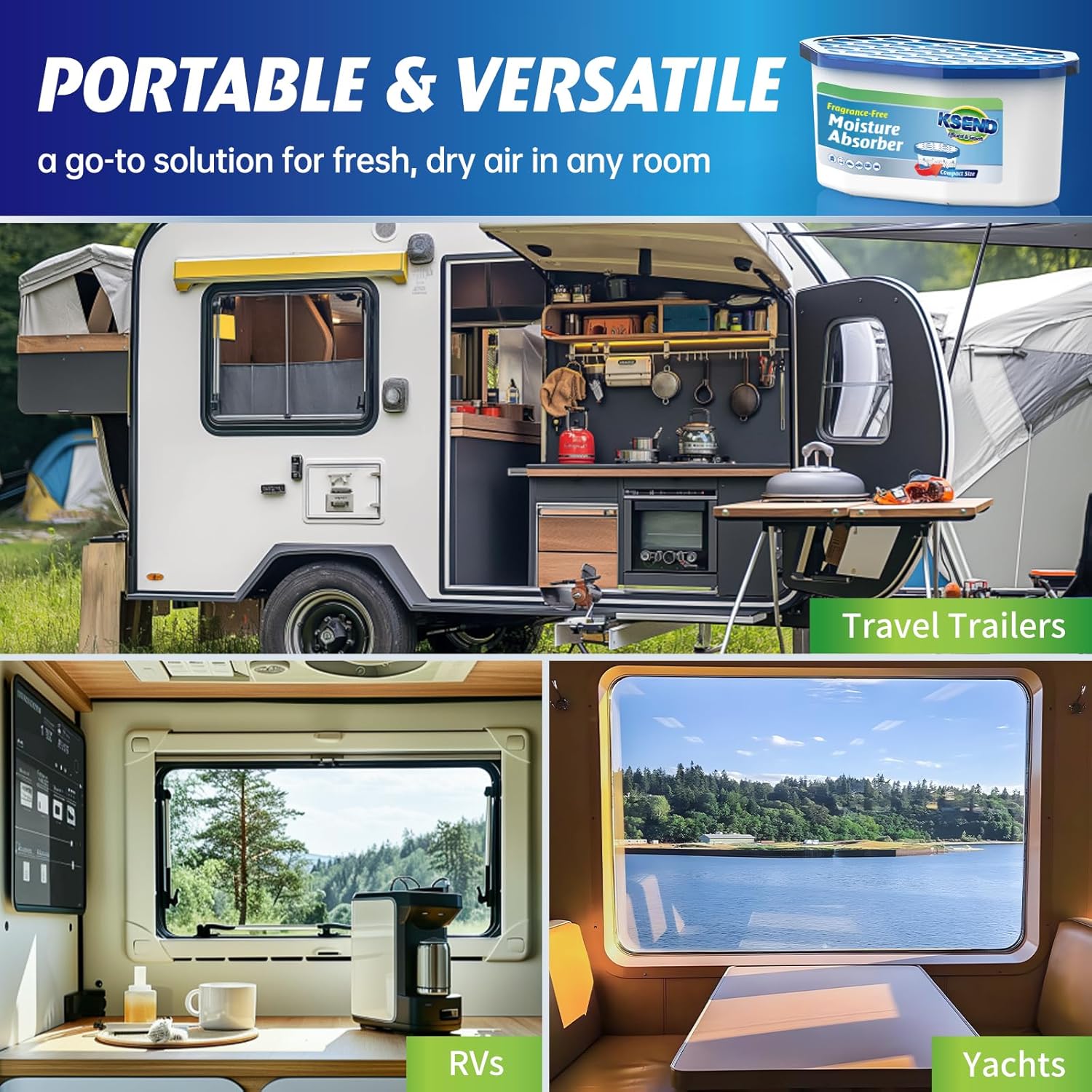 - LEAKPROOF DESIGN: Ksend moisture absorbers for rooms are equipped with a unique moisture-locking paper design. This innovative feature ensures that even if the boxes are accidentally overturned, the collected water will remain securely contained. You can confidently place them anywhere without worrying about water leakage.