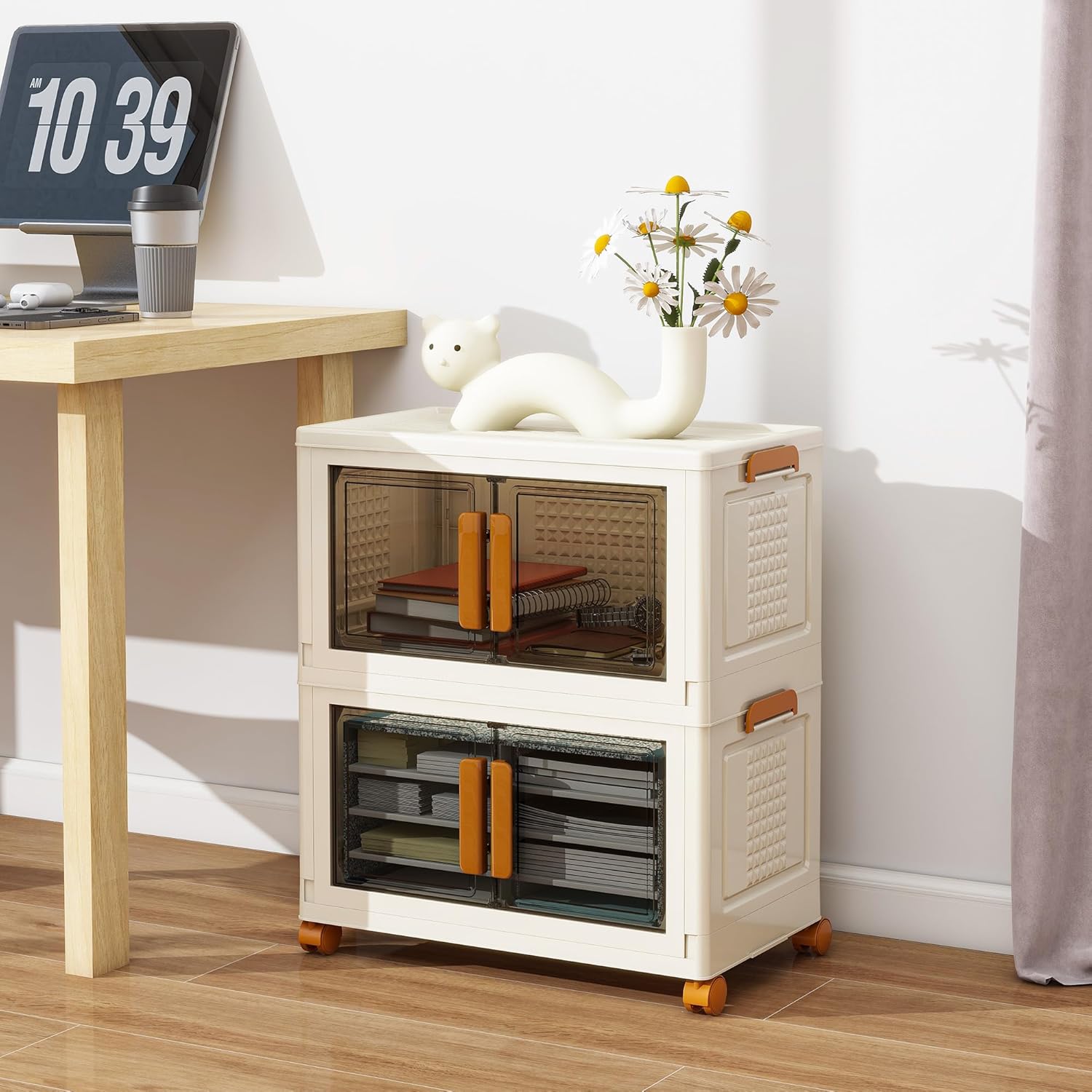 2 Tier Stackable Plastic Storage Bins with 1 Lid 45 QT/Tier, Collapsible Plastic Box Storage Bin with Wheels, Home Containers Boxes Closet Organizers for Living Room, Office, Dorm