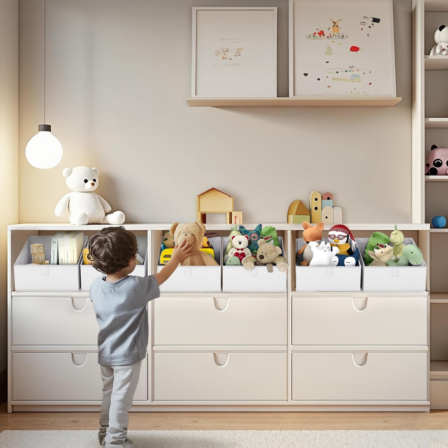 DIMJ Closet Storage Bins 6 Pack - Fabric Trapezoid Organizer Bin, Foldable Storage Baskets for Shelves, Closet Shelf Organizer, Clothing Storage Box for Toys, Books, Towel, Clothes, White