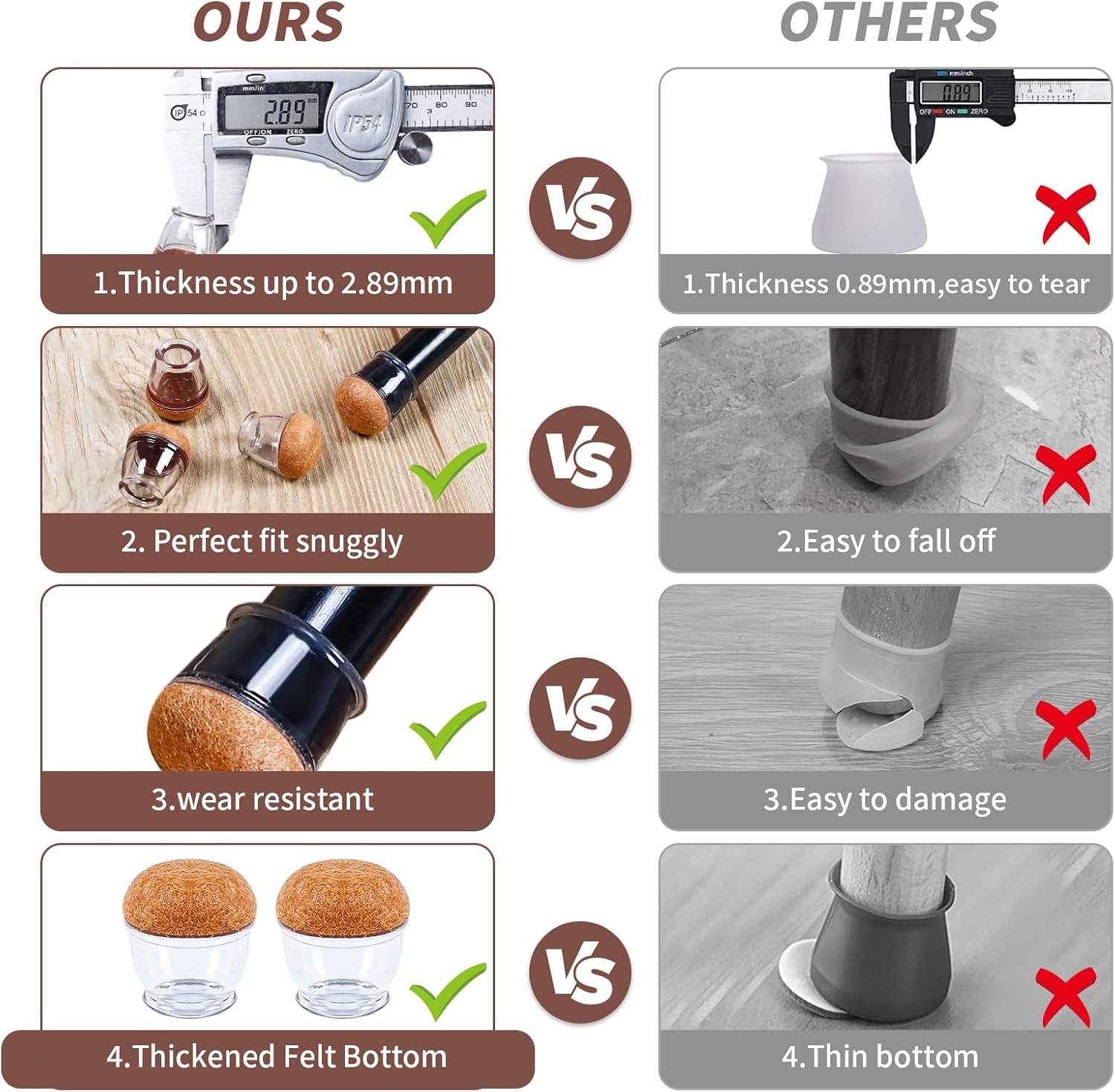 - ☛【360°Thickened Wrapped】- The 0.2 inches (5mm) upgraded thickened bottom felt more wear-resistant, lasting much longer. These silicone chair leg floor protectors protect your hardwood, ceramic tile and linoleum floors from marring and scuffs.