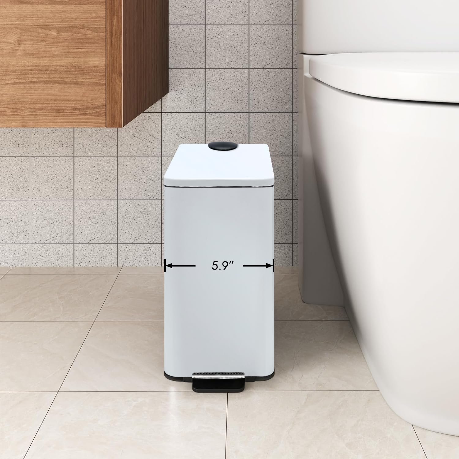 Stainless Steel Small Trash Can with Lid & Step Pedal - 6 Liters/1.6 Gallon Soft Close Garbage Can with Removeable Inner Bucket - Trash Cans for Bathroom, Bedroom, Kitchen & Office (White)