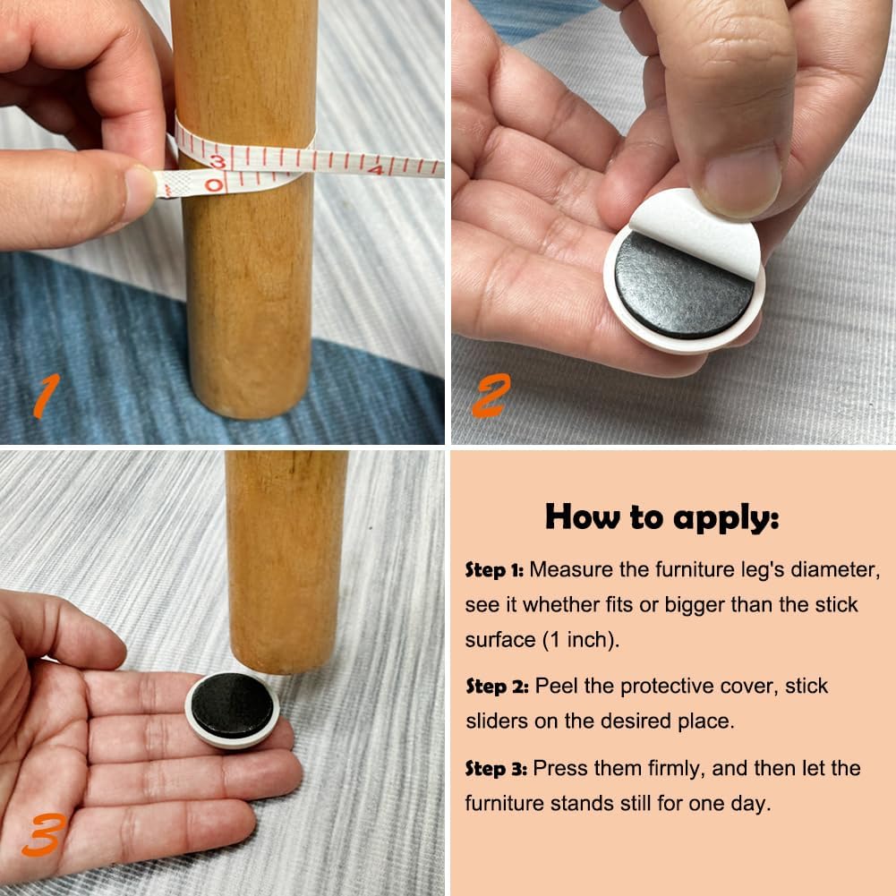 - ★WIDE APPLICATION - With strong adhesion, the furniture glides can be easily stick to wood, glass, metal, plastics, widely used on dining table, desk, chairs and other furniture legs fit the size