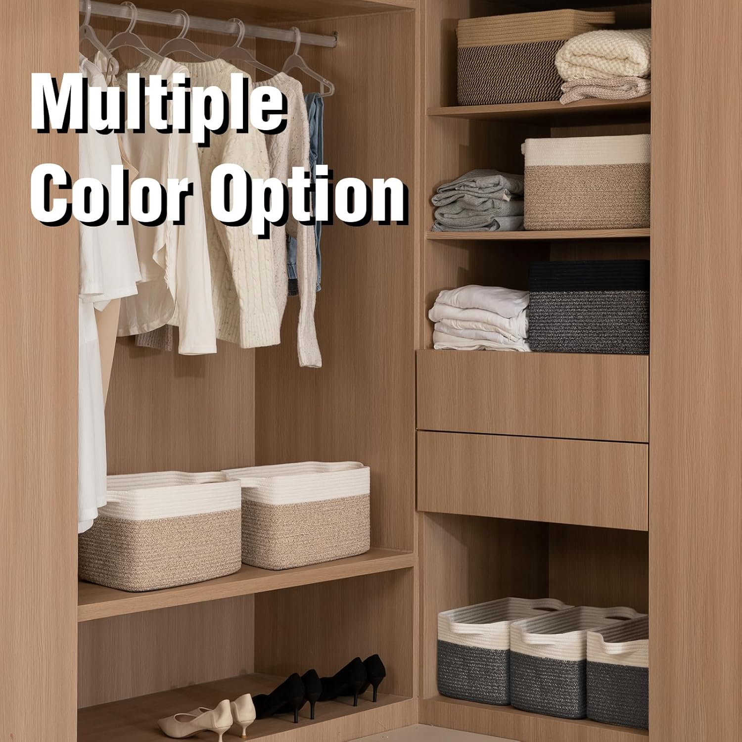 - Stylish Basket:not only will our baskets bins help you get organized,they neutral colors will complement any decor and any room