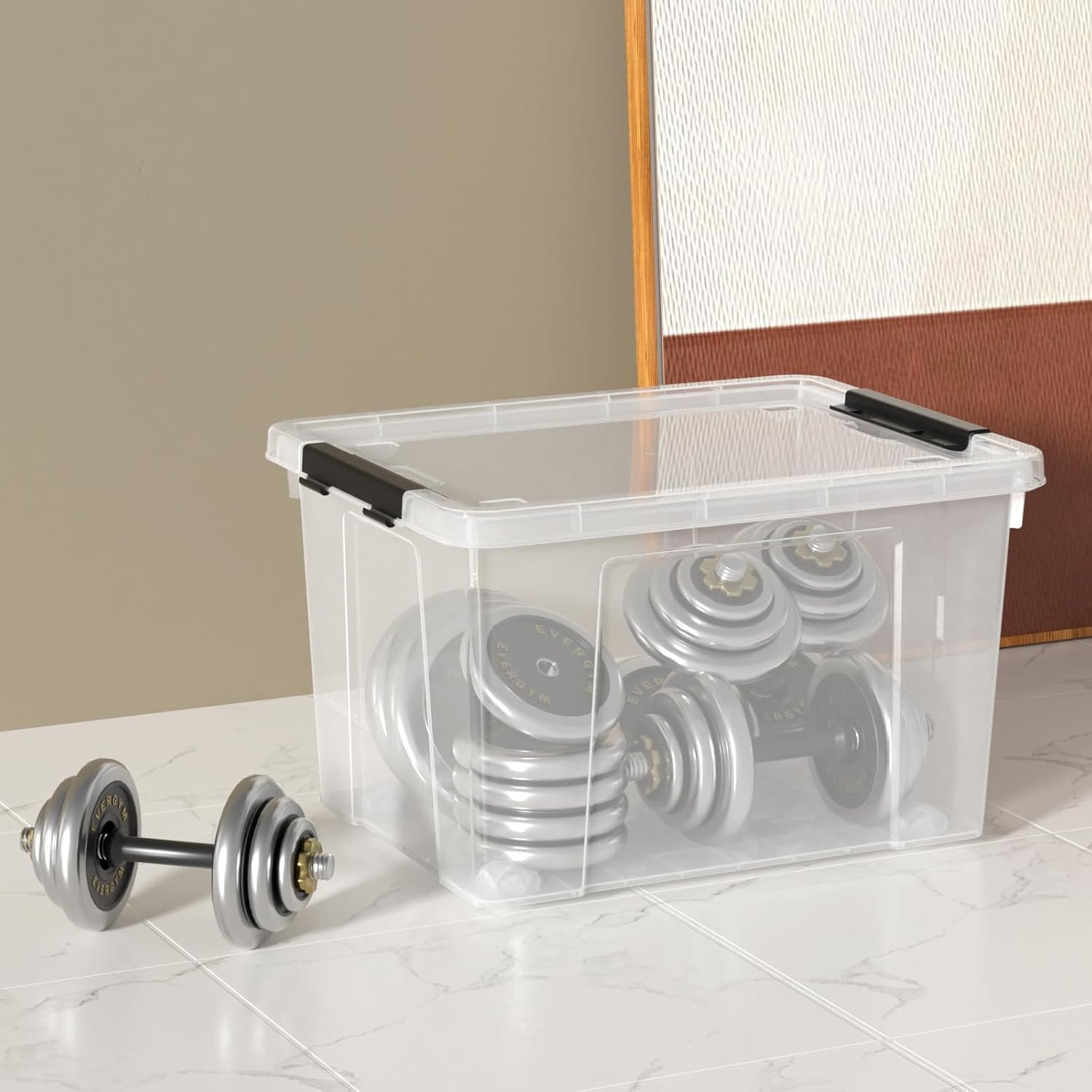 Zopnny 40 Quart Clear Latching Box with Wheels, Plastic Storage Containers with Lids, 4 Pack