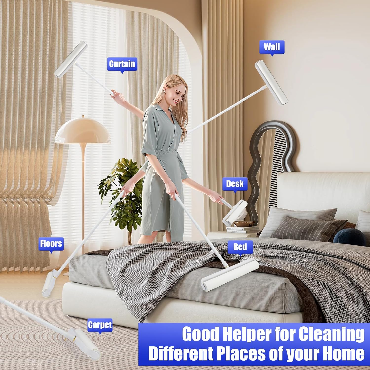 - MULTI-SURFACE PET HAIR TERMINATOR: Engineered for fur-covered surfaces: upholstery, velvet curtains, wool rugs, leather car seats, and delicate fabrics. Safely lifts embedded cat/dog hair, dander, lint balls, and dust—no water, batteries, or messy cleanup required.