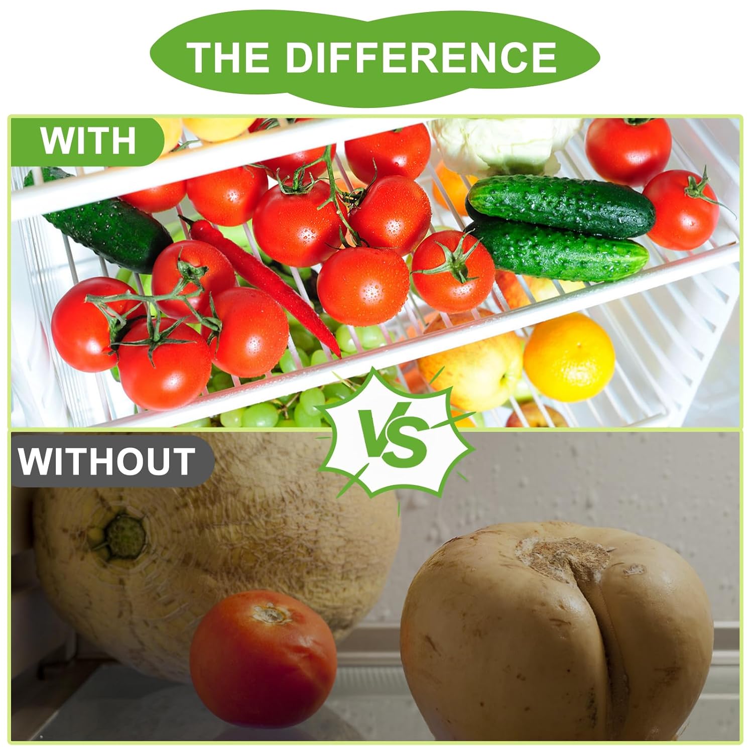- 【REFRIGERATOR DEODORIZER】: Keeps the foods fresh longer, Removes food gas and controls humidity to keep produce fresh.