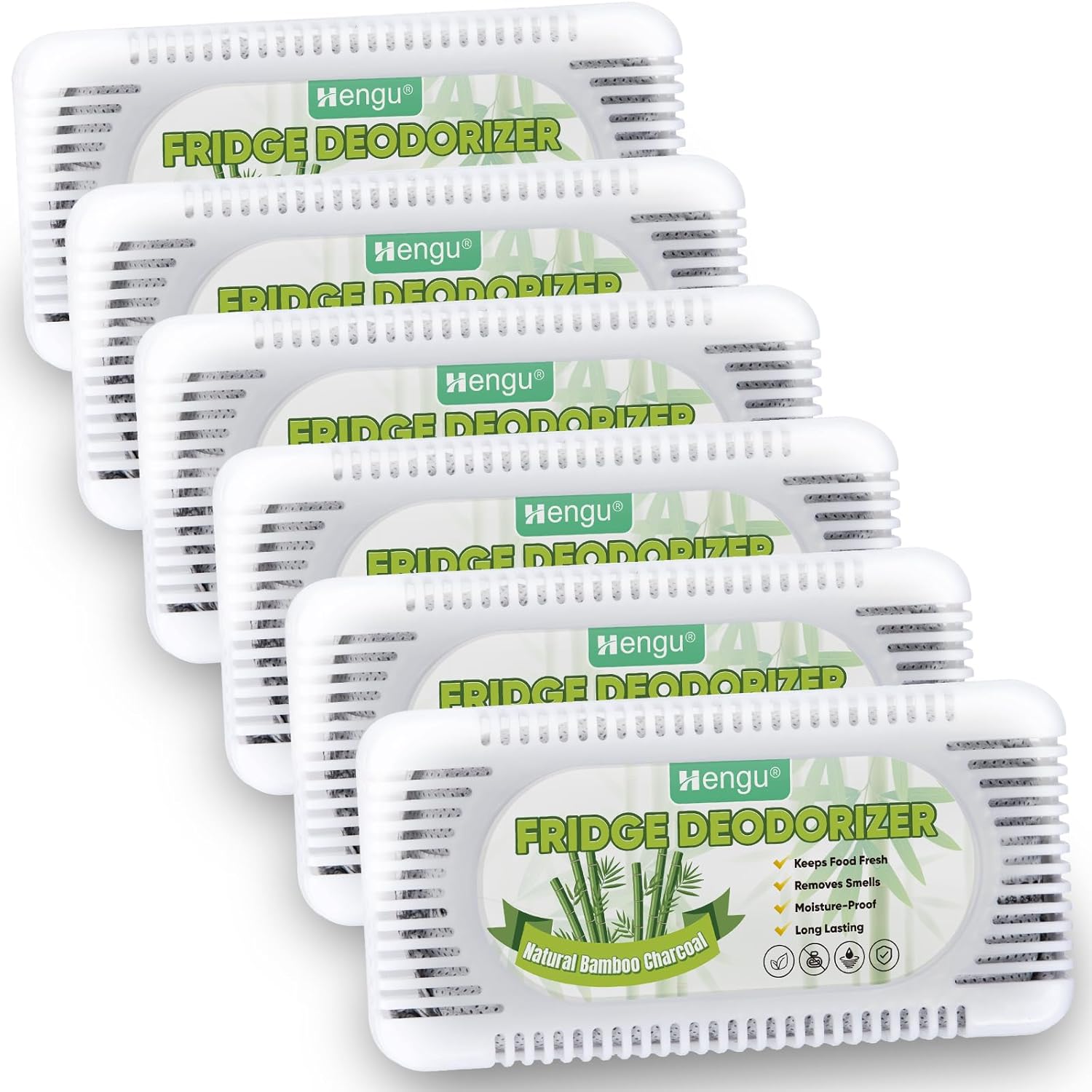 Hengu Fridge Deodorizer, (6 Pack) Fridge Odor Eliminator Natural Activated Charcoal More Effective Fridge Deodorizer Odor Eliminator Than Baking Soda, Smell Eliminator for Refrigerator & Freezer