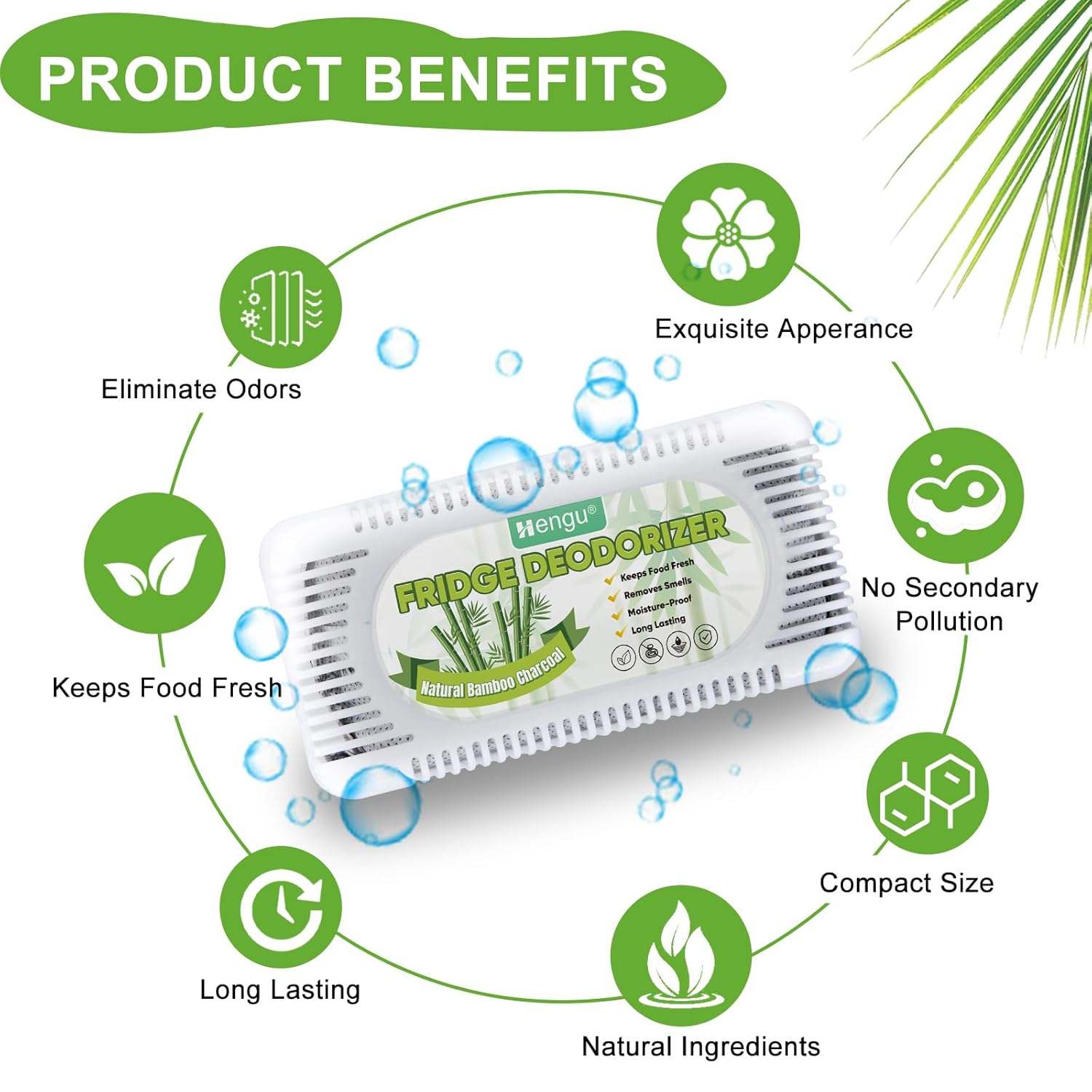 - 【NATURAL AND SAFE】: Fridge odor remover with natural activated charcoal, eliminates the odors at the source, maintains a fresh odorless refrigerator.