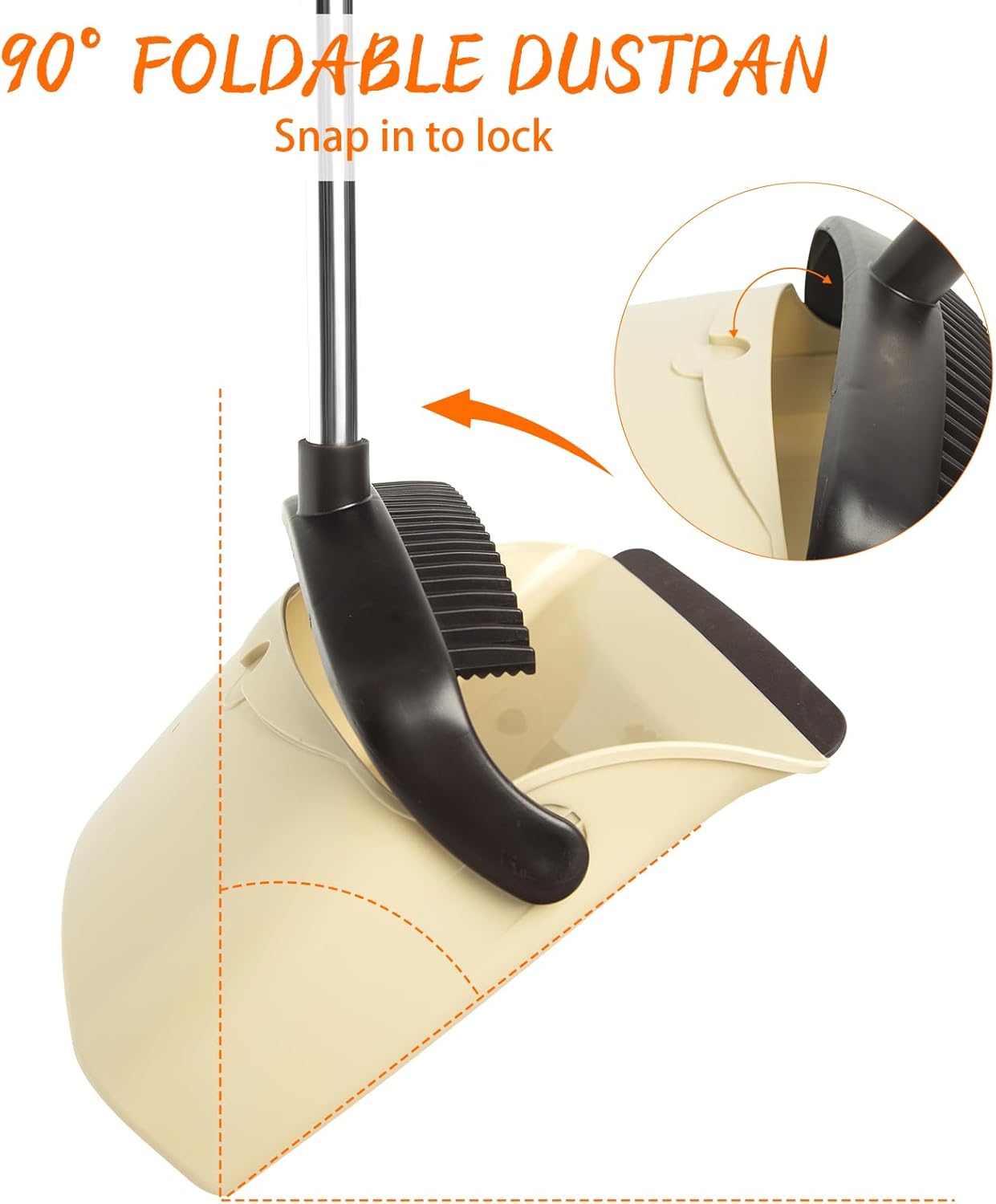 Broom and Dustpan Set, Dustpan Combo with 51" Stainless Steel Long Handle Brooms with 5-Layer Soft Bristles for Home Office Kitchen Bathroom(Beige)