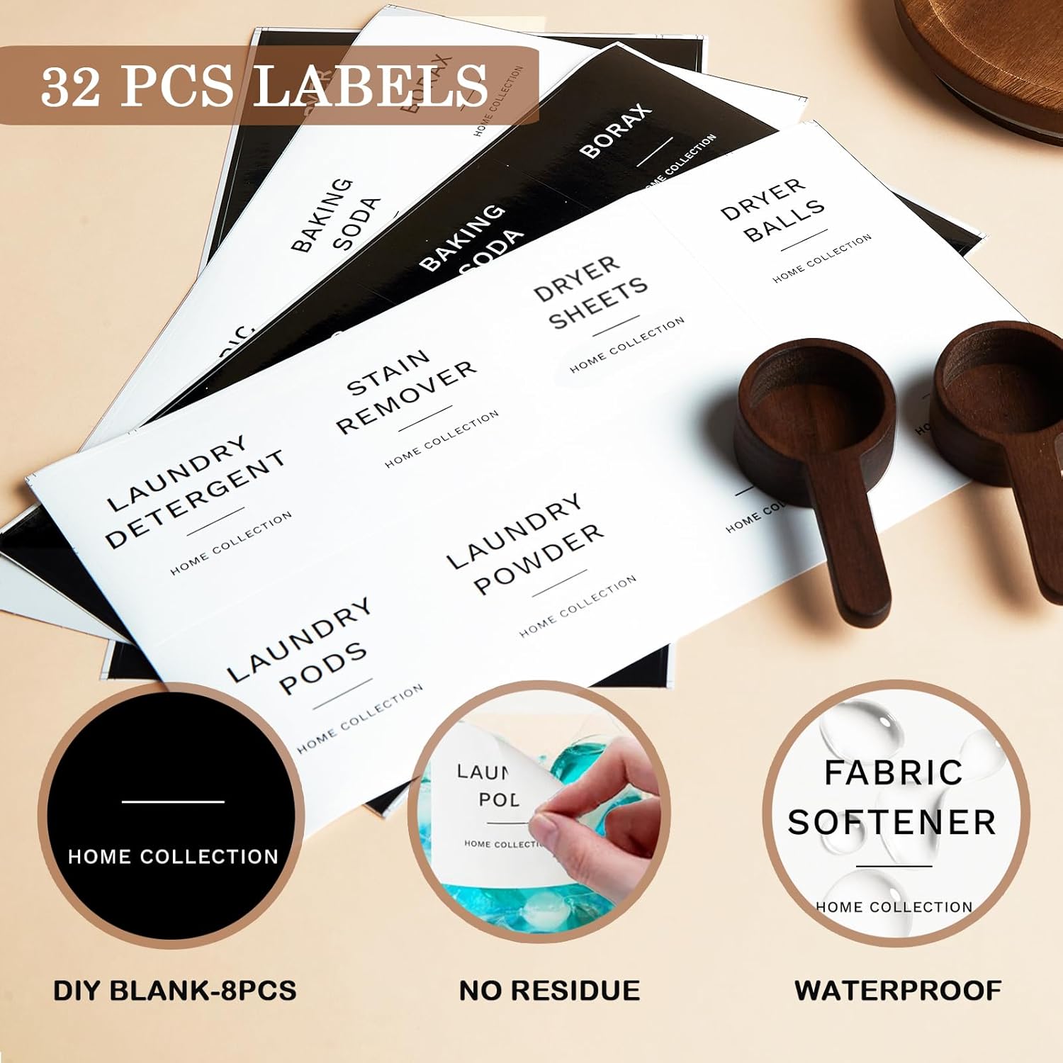 - Complete laundry containers set: It features 2 airtight 70oz capacity laundry jars and 2 gorgeous acacia scoops, which offers a lovely solution for storing laundry powder, pods, scent booster beads, dryer sheets and dryer balls. It eliminates the need for bulky plastic laundry detergent bottles and can really elevate and modernize any space!