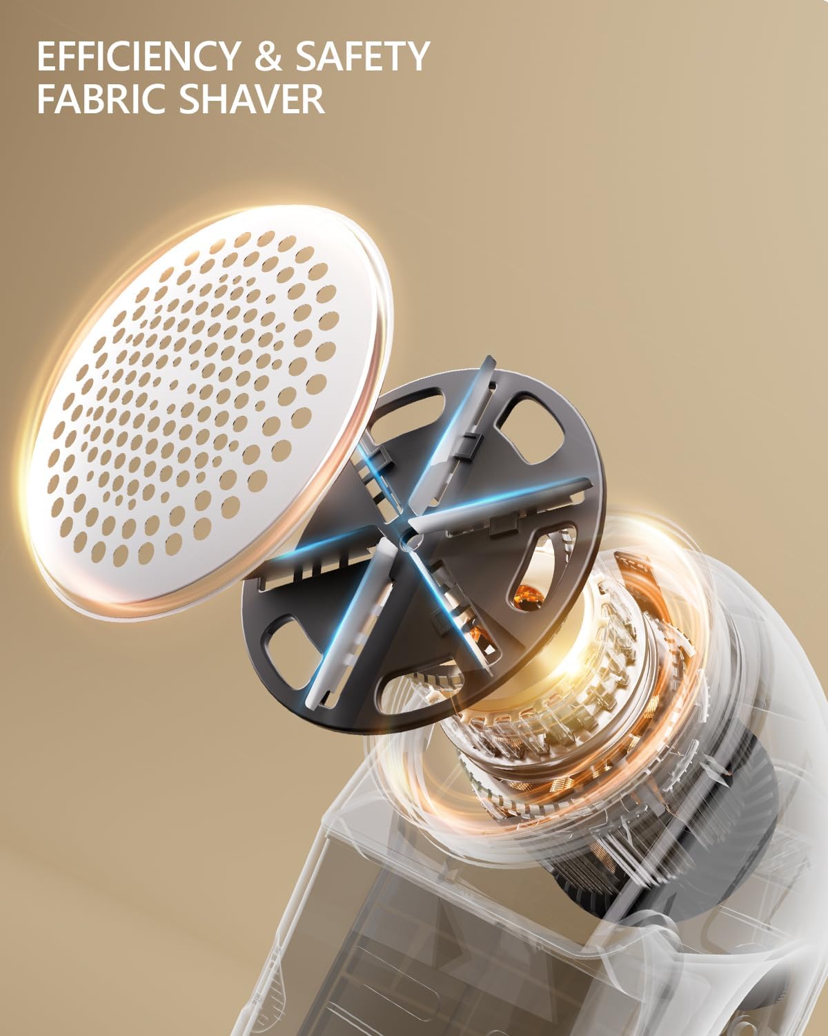 - FEATURES & BENEFITS: The sleek matte finish design shaver with a 2.5 inches shaving head that has 3 different sizes of mesh for trimming of lint, pill, fuzz of all sizes. It also with a comfortable grip handle and extra large lint collector. Blades upgraded to 6-blade blades for greater efficiency and this is replaceable. And the lint shaver with a safety lock design. If you or your children opens the shaving head accidentally, the safety lock will start and the blades will not turn.