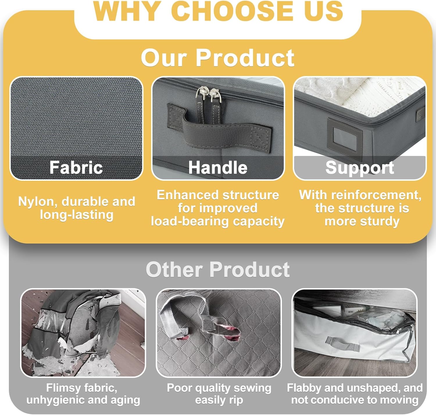- Durable Material: Made of 600D heavy-duty Oxford fabric, it resists tearing when storing thick quilts or plenty of seasonal clothing (T-shirts, sweaters, jackets) – no more "tearing under load." Paired with 3-sided double-stitched PU handles, it stays intact when you lift heavy loads and stable when pulled from under beds or sofas. Ideal for families, students, and renters