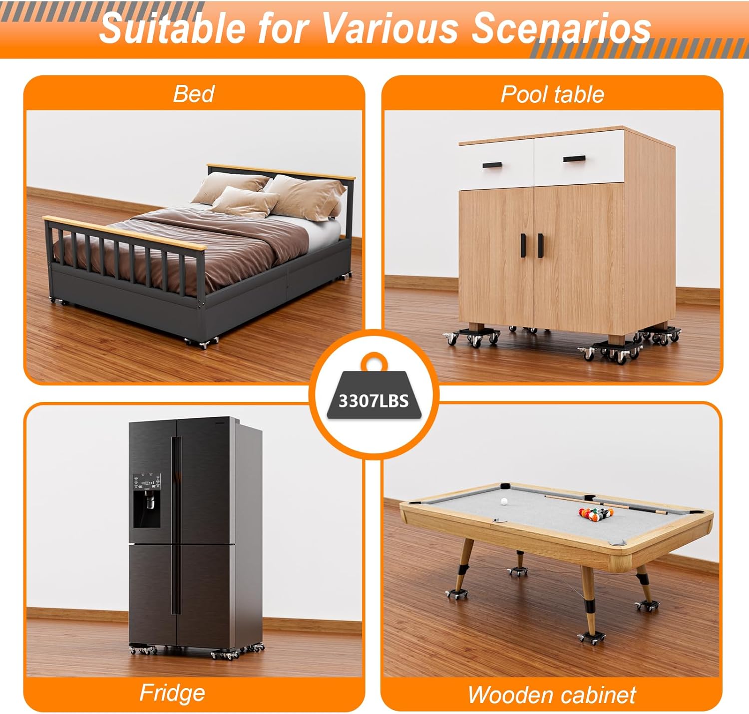 - Versatile for All Furniture: Ideal for moving sofas, beds, wardrobes, refrigerators, pianos, and other large appliances. Designed for smooth use on wood and tile floors, this dolly glides effortlessly—note: not suitable for uneven floors or high-pile carpets.