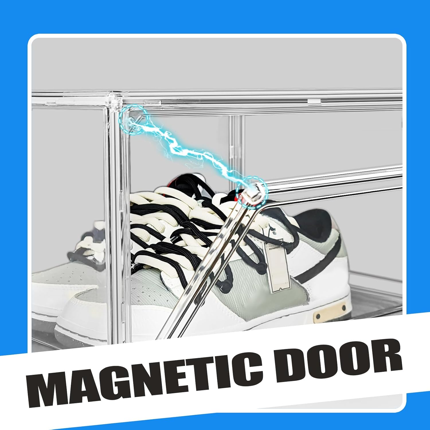 10 Pack Shoe Box Organizer Clear Plastic Stackable Shoe Boxes with Magnetic Lid Acrylic Display Case Shoe Containers for Entryway,Sneaker Storage Fit up to US Size 12