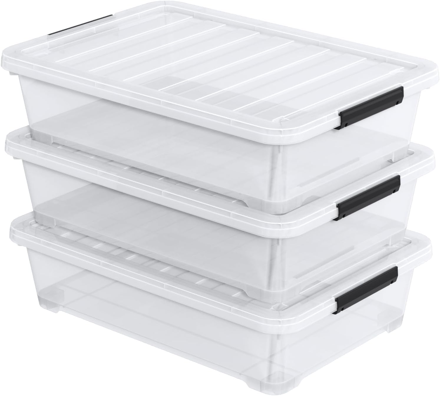 40 Quart Under Bed Plastic Storage Bins with Wheels, 3 Packs Clear Large Storage Container Box with Lids
