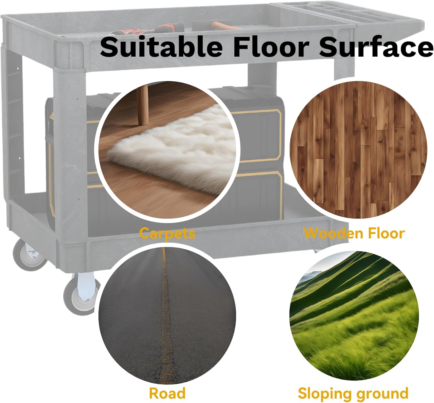 - Versatile & Safety-Focused Design: Ideal for offices, factories, garages, and outdoor use, the cart handles slopes and rough terrain effortlessly. Rounded corners prevent injuries or damage to walls and furniture, ensuring user safety during operation