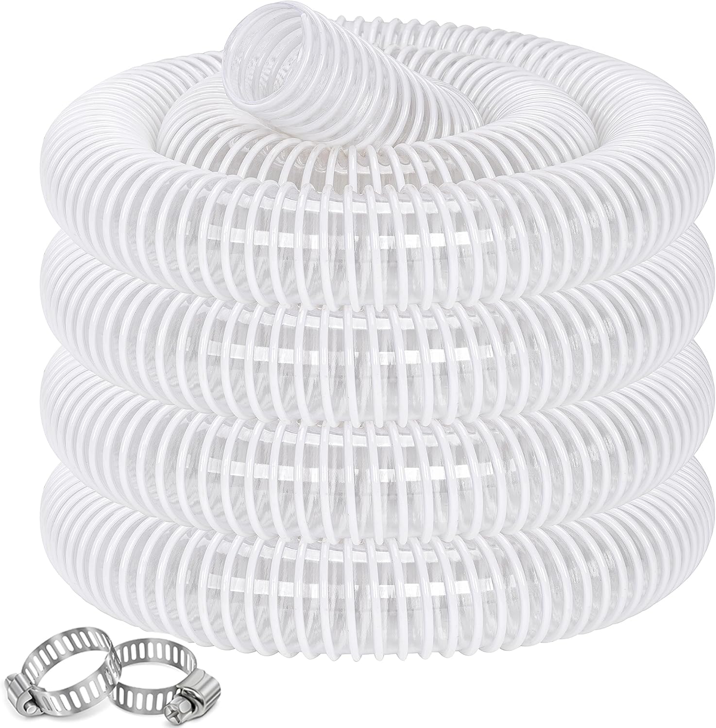 Dust Collection Hose 2 in × 20 ft Heavy Duty Clear Flexible PVC Reinforced Thicken Helix Suction Discharge Corrugated Pipe Hose for Fume Dust Collector Fitting Wood Chip Saw