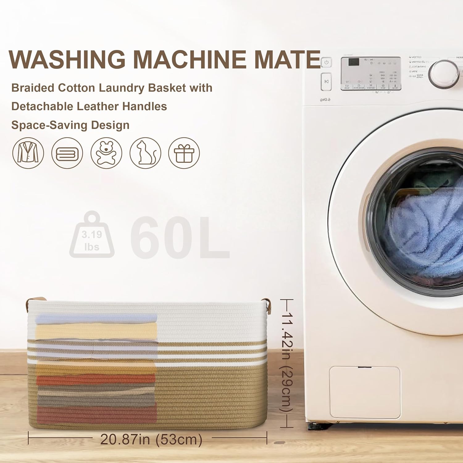 - HOUSEHOLD STORAGE SOLUTION: 60L oversized basket. The extra large basket can hold the entire family's daily laundry and can be used as a toy storage basket, a baby laundry basket, a nursery laundry basket, a blanket/throw storage for living room or a towel basket for bathroom