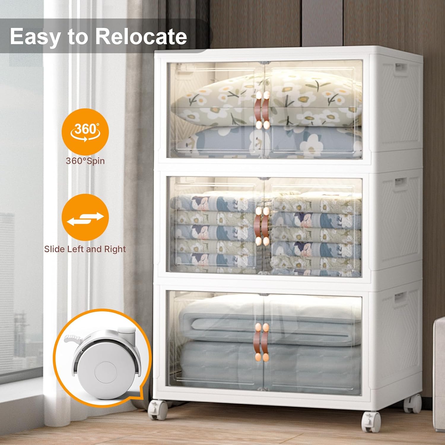 - 【Smooth Mobility with Locking Wheels】: Easily move your storage wherever you need it. These stackable storage bins with wheels feature four smooth-rolling casters, including two locking brakes, keeping your bins stable yet mobile — great for bedrooms, dorms, or offices.