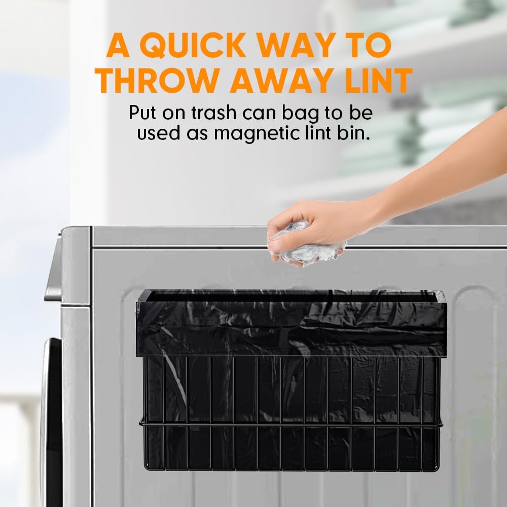 - Magnetic lint bin for laundry room: The dryer ball holder is included trash can bag to put on the holder to be used as a magnetic lint bin for laundry room, which can store lint, lost socks or other small items as a laundry room essentials to make your laundry room neater and less cluttered. The capacity has multiple loads of lint without having to worry about it overflowing. This is a quick way to throw away lint when you hold the magnetic magnetic lint bin onto the washer