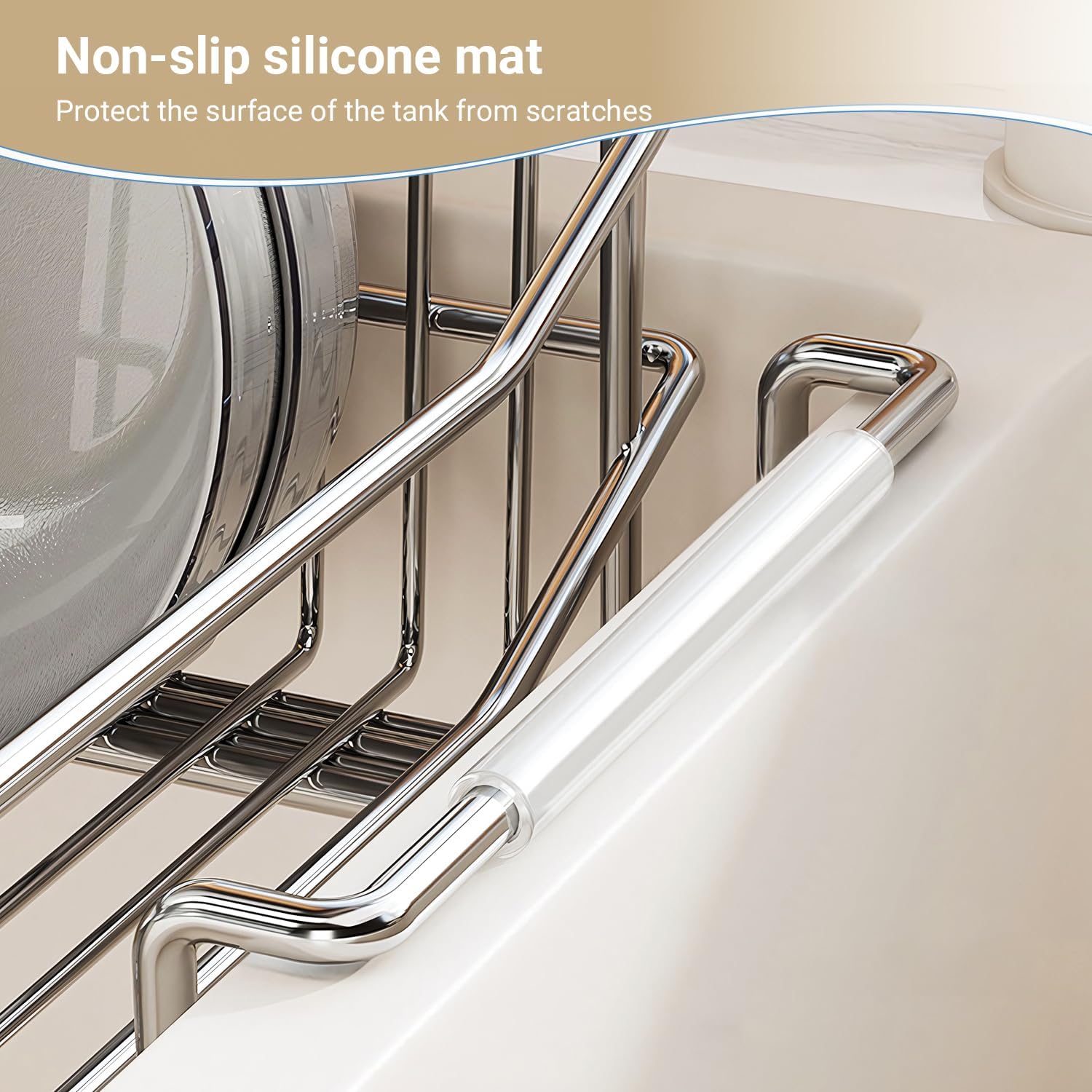 304 Stainless Steel Over Sink Counter Top Perfect Dish Drainer, Extendable Drainage Basket Drying Rack for Fruit, Vegetables, and Dishes - Corrosion-Resistant, Space-Saving
