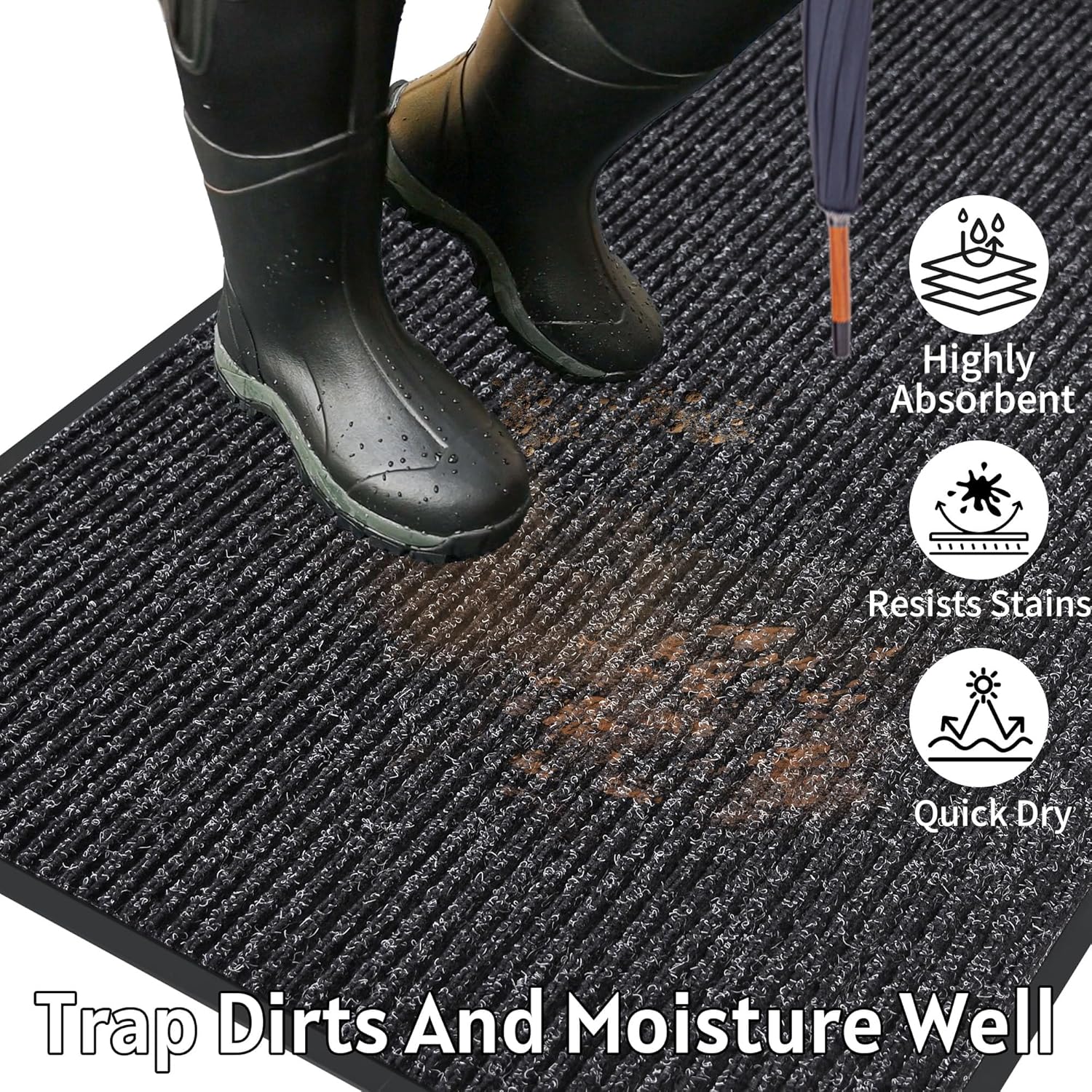 - Super Absorbent & Quick-Drying: Designed for maximum absorbency and quick drying, our high performance welcome door mat keeps your floors clean and dry. The indoor front door mat acts like a sponge. It instantly absorbs rainwater, melted snow and mud from shoes, preventing wet footprints and slippery hazards indoors