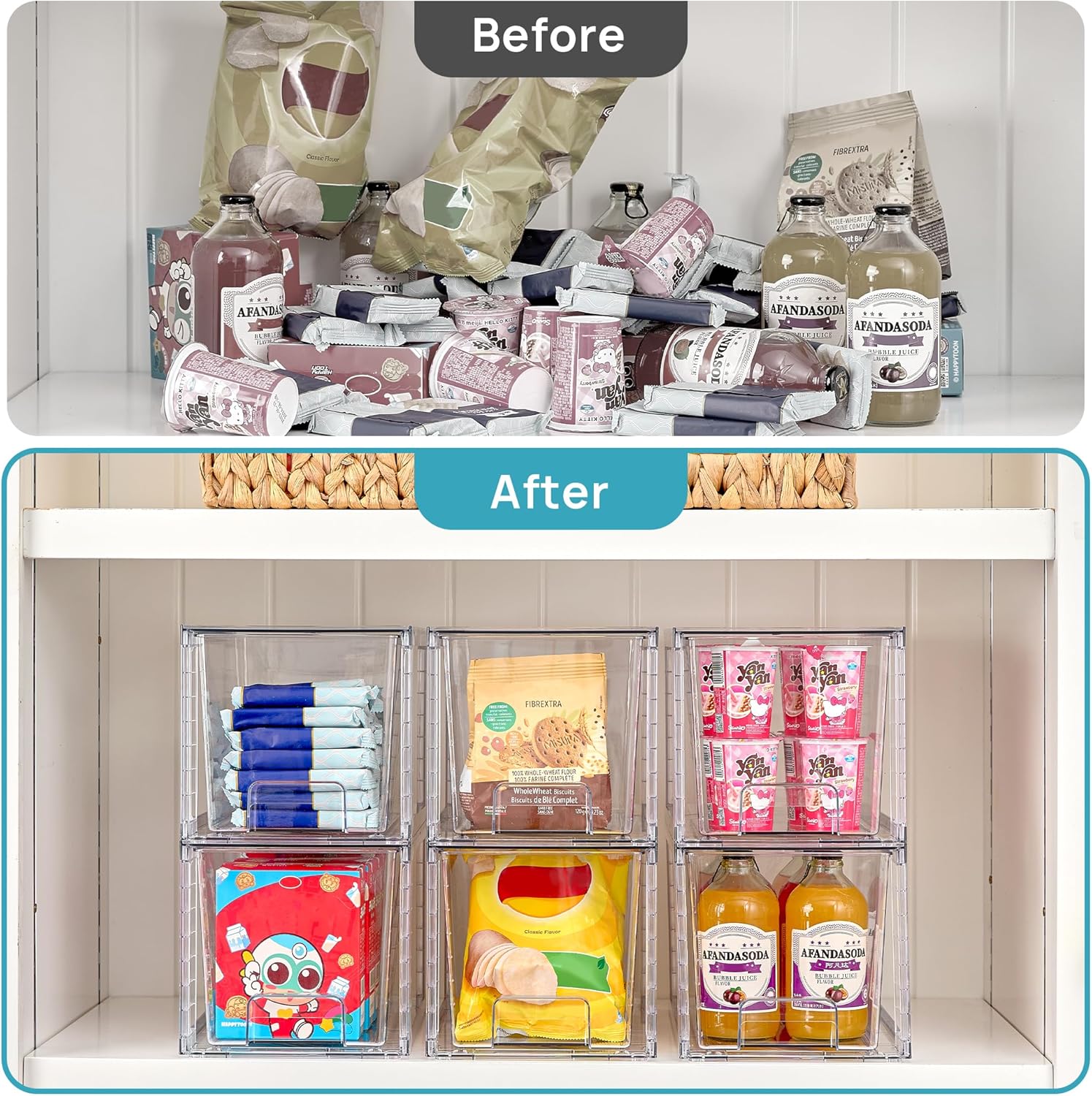 Vtopmart 8 Pack Large Stackable Storage Drawers,Clear Acrylic Drawer Organizers with Handles, Easily Assemble for Fridge, Bathroom,Kitchen Undersink,Cabinet,Pantry Organization and Storage