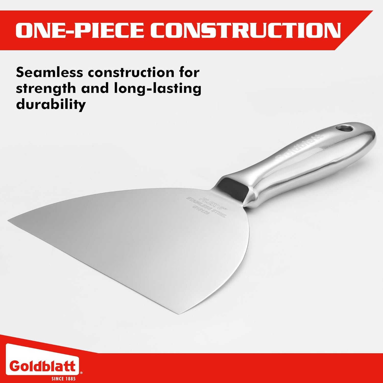 Goldblatt 6" Putty Knife, One-Piece Paint Scraper Tool, All Stainless Steel Joint Knife with Flexible Blade, Seamless Design, Metal Ergonomic Handle - for Drywall Repairing, Finishing and Scraping
