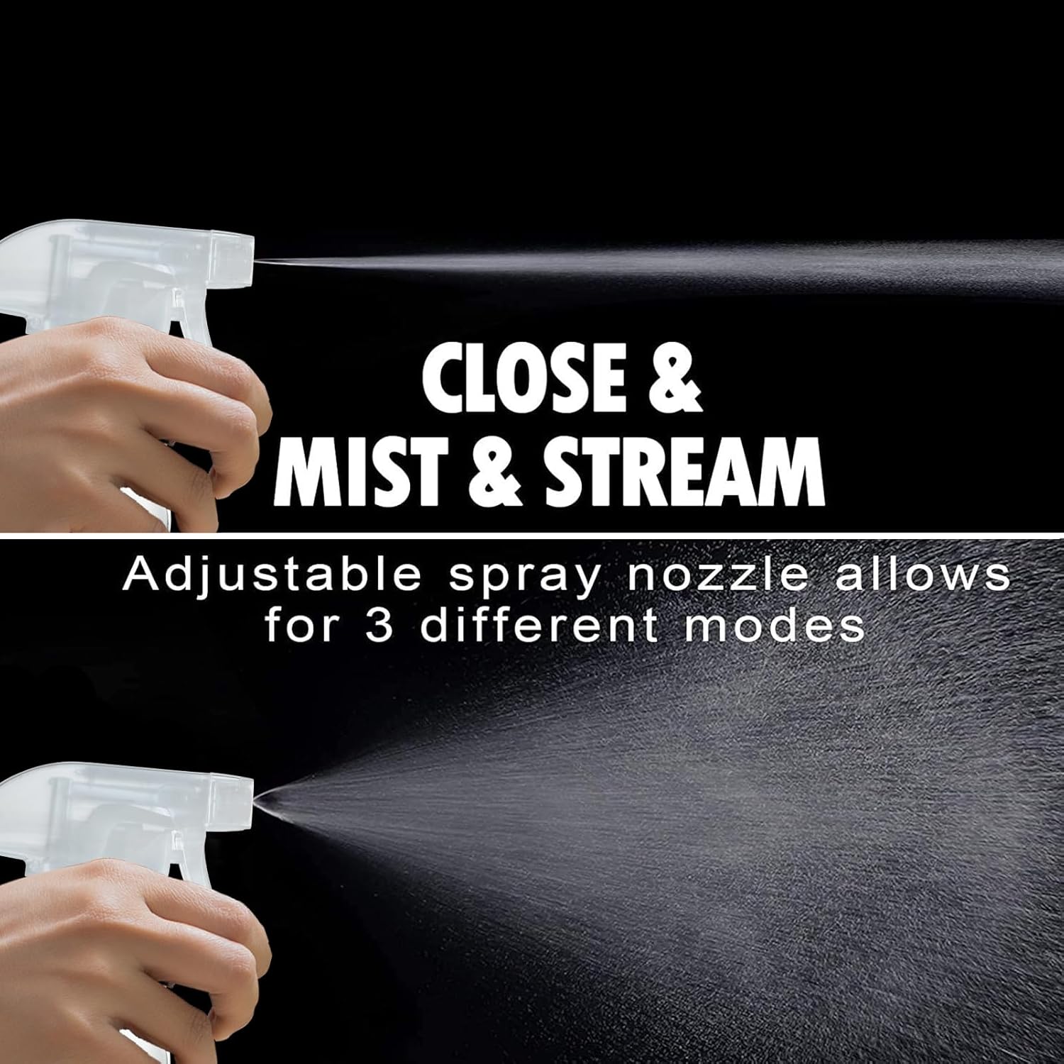 - The spray bottle nozzle switch between a fine mist or a strong spray for cleaning.The tube that goes inside the bottle is sufficiently long to make sure that all the liquid can be sprayed out.They spray great even after hundreds of back to back sprays.