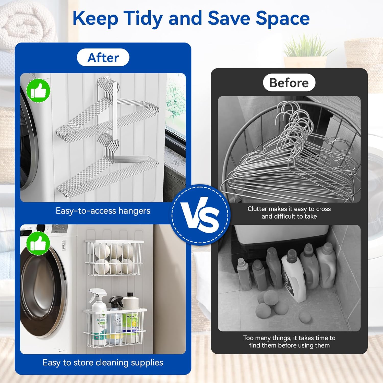 - Durable and Simple: The back is made of strong magnets and high-quality glue, and the magnetic strips will not fall off easily. The drying ball holder and hanger holder are made of high-quality metal materials with smooth paint, durable and rust-proof. Add a pleasant look to your laundry room and say goodbye to monotony.