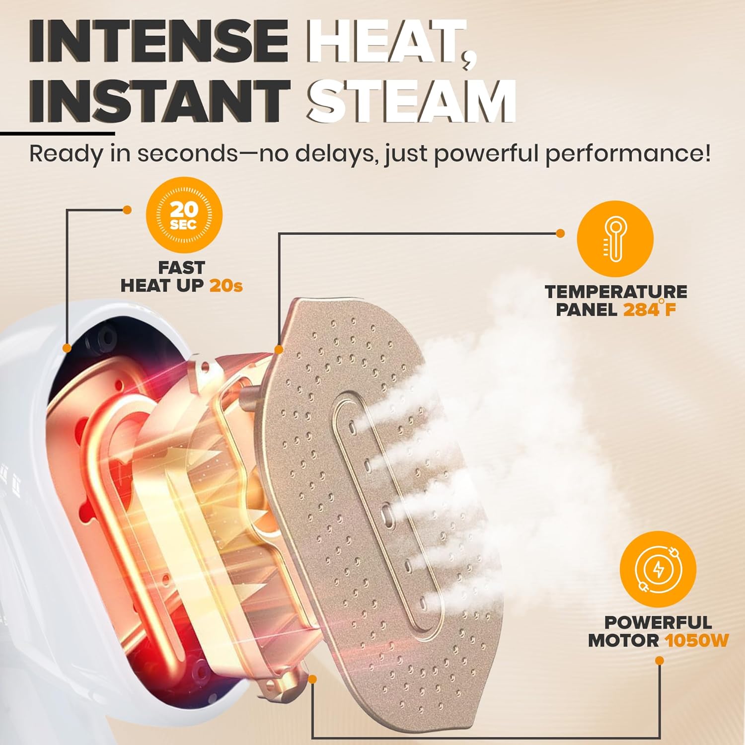 - 𝗙𝗮𝘀𝘁 & 𝗣𝗼𝘄𝗲𝗿𝗳𝘂𝗹 𝗪𝗿𝗶𝗻𝗸𝗹𝗲 𝗥𝗲𝗺𝗼𝘃𝗮𝗹 – Experience professional-grade steaming with 1050W of powerful steam output. Our high-performance clothing steamer instantly removes stubborn wrinkles, creases, and odors from various fabrics, including cotton, silk, linen, wool, and polyester, leaving your clothes fresh and smooth within seconds.