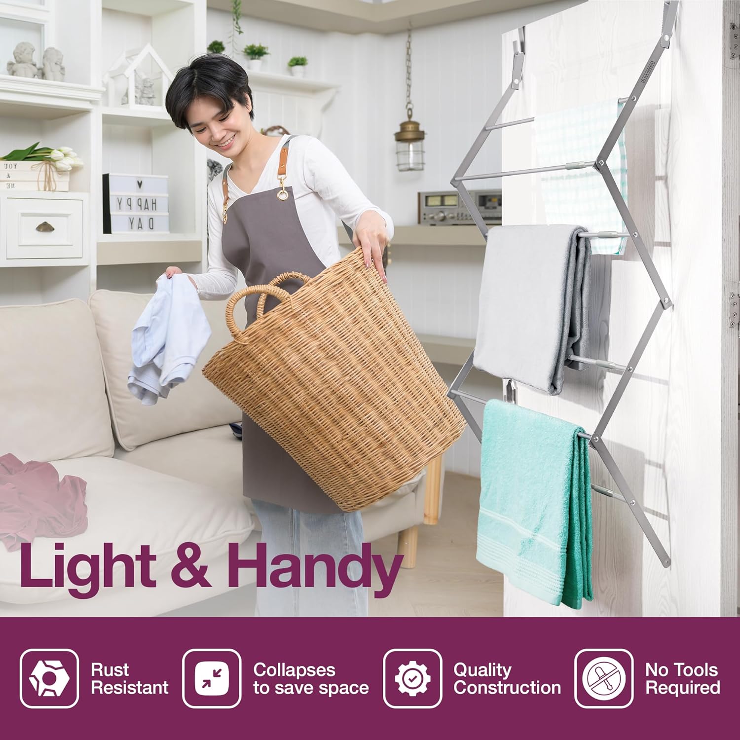 - Expandable & Space-Saving Design: Features a compact, over-the-door design that expands up to 24 inches and folds down to just 3.5 inches for easy storage.