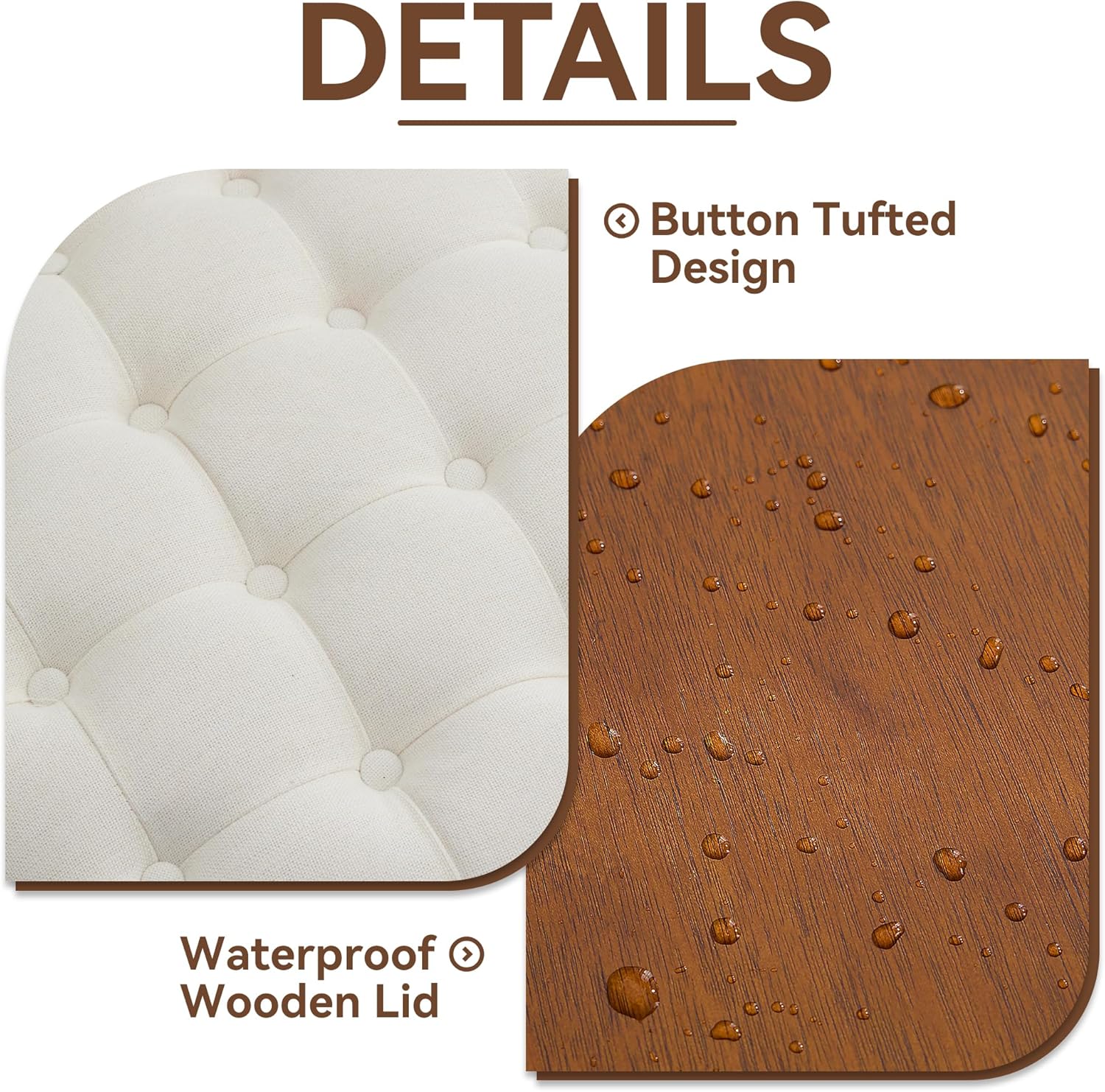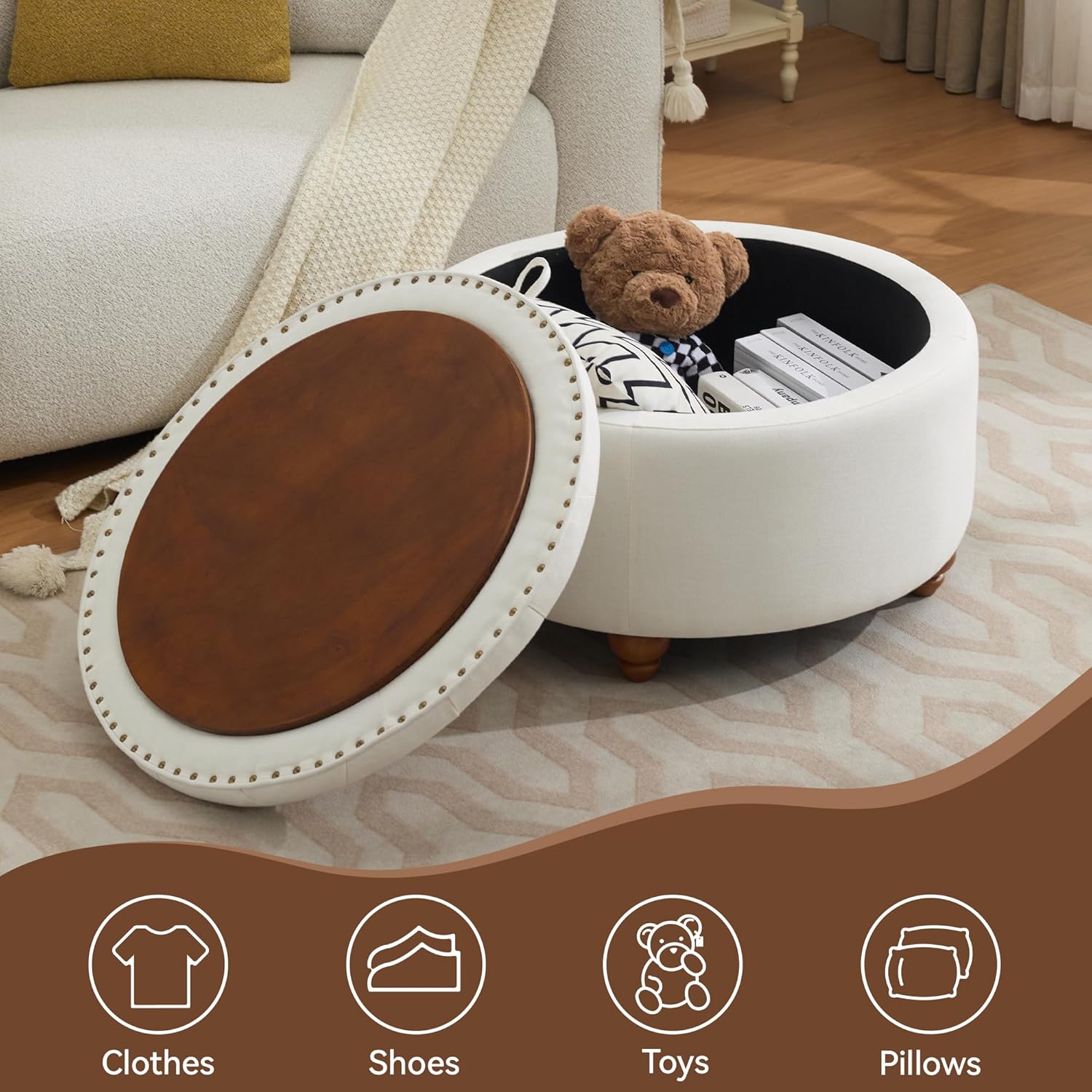 - Premium Material:Circle ottoman is made of high-quality linen fabric, which is soft and breathable. The wooden cover has a natural texture and a smooth and waterproof surface. It can be used as a coffee table, had a fine craftsmanship, simple design, and spacious storage space, combining beauty and practicality.