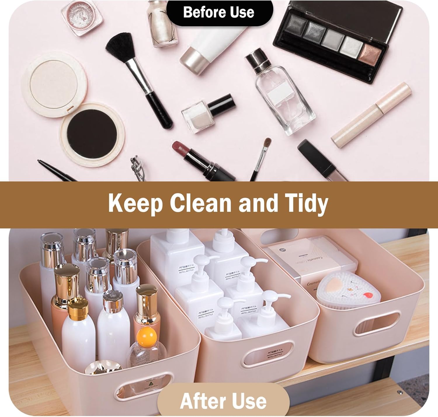 - Wide Application: These storage bins are ideal for use in a variety of settings, including bathrooms, bedrooms, kitchens, living rooms, studies, and offices, providing an efficient way to organize and declutter your space.
