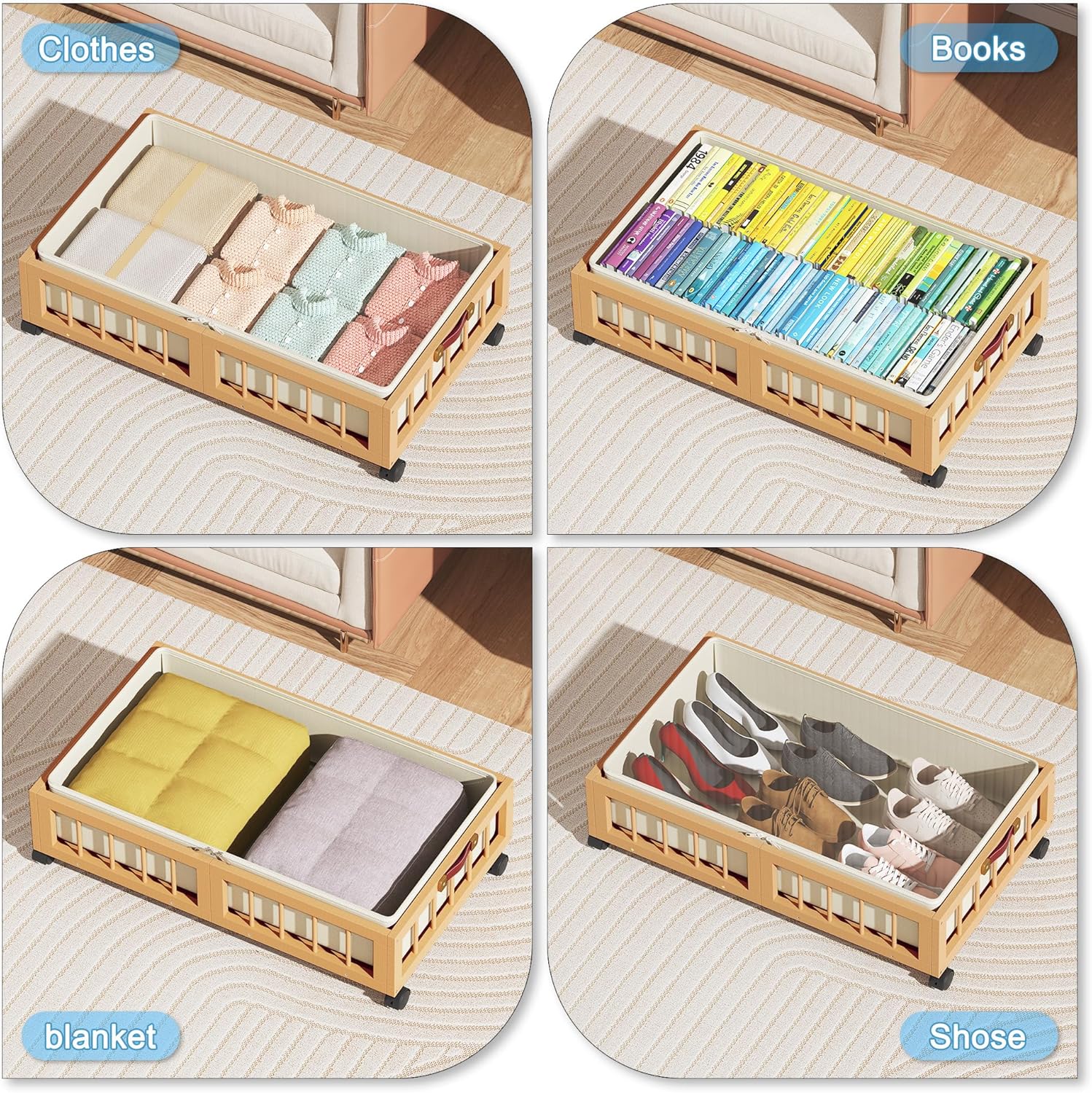 - 【Stylish Look】 Natural Bamboo material make the rolling under bed storage look simple and elegant. 2 PACK Under bed Storage are great for bedroom, living room, dorm and basement. Choose it to make your tiny space a new look!