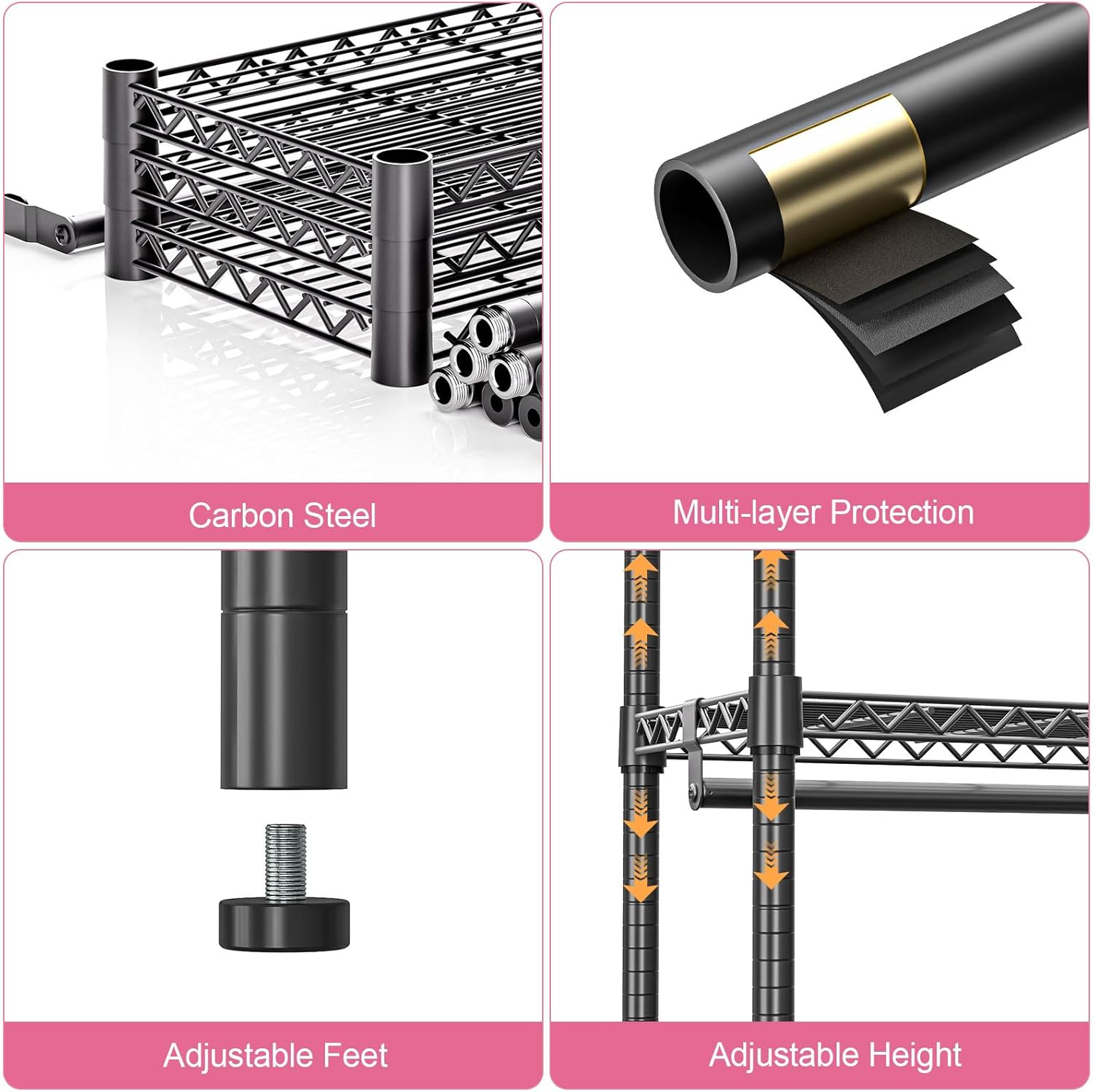 - High Weight Capacity : Built to handle heavy loads, this rack supports up to 1050 lbs when stationary and approximately 300-350 lbs when on wheels, making it ideal for both lightweight and bulky storage