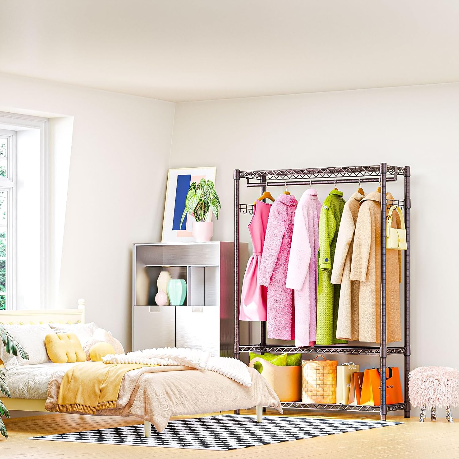 - Stable and Versatile Design : This freestanding garment rack offers exceptional stability while providing ample storage for clothing, shoes, dresses, and more