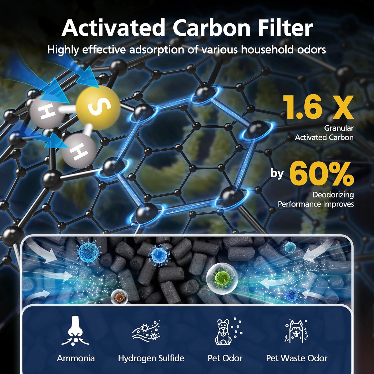 - 【Pet Care Filter】This HP152HH filter is customized for pet-loving families to promote harmonious coexistence between humans and pets. It can effectively attach ammonia, pet odors, pet waste odors and more. Let you say goodbye to pet odor troubles and create a fresh, pet-friendly living environment.