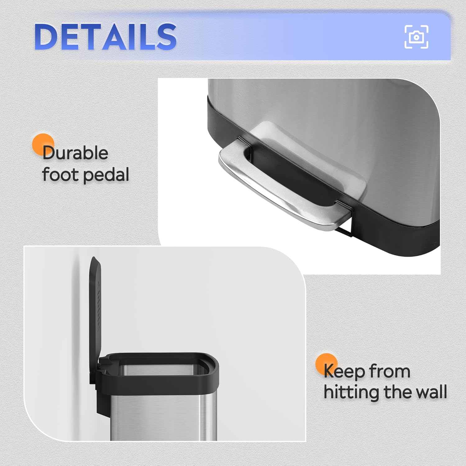 - 【Heavy-Duty Foot Pedal】Enjoy hands-free operation with a durable steel pedal, tested to withstand over 200,000 steps—perfect for everyday use. No need to bend or touch the lid, keeping your hands clean.