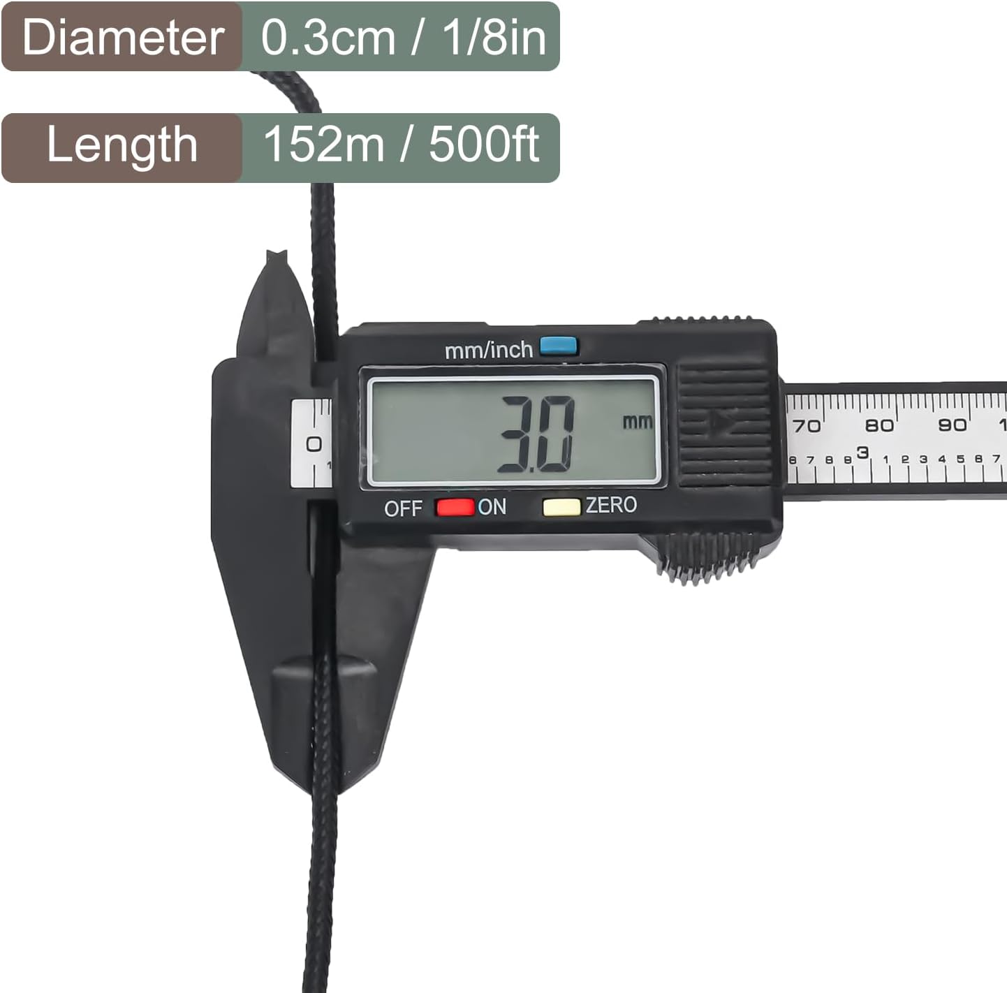 - 【Ideal Size and Length for Multiple Uses】 Measuring 1/8 inch in diameter and 500 feet in length, this black polyester rope offers the perfect balance of versatility and practicality. The 1/8 inch thickness is ideal for a wide range of applications, from securing heavy items to creating intricate designs. Whether you are working on a large-scale project or multiple smaller tasks, this rope will meet your needs.