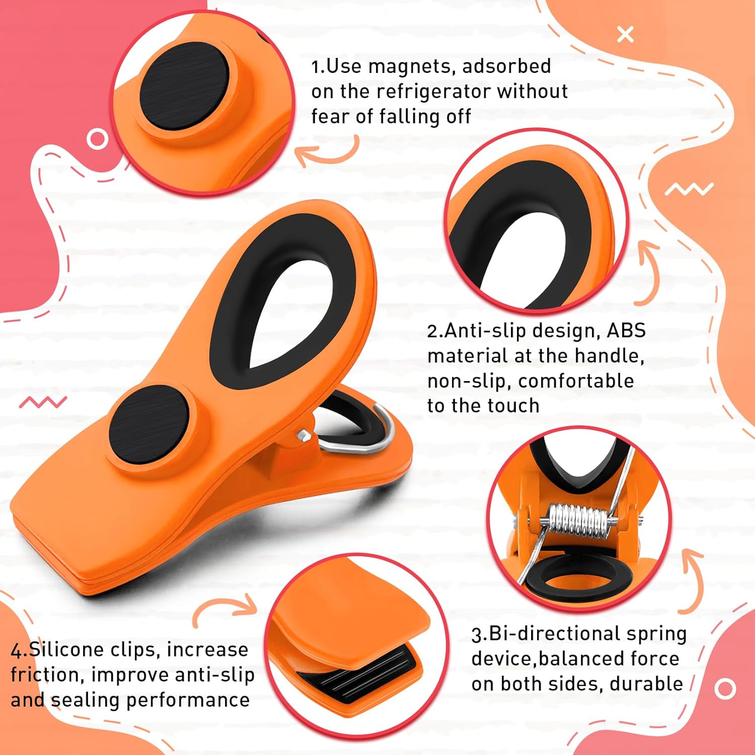 - You will receive: Set includes 24 magnet clips with soft touch handles - the perfect shape and size clip for all different sized bags of chips and food. sufficient quantity for you daily using and replacing demands, also nice to share with your family and friends who need it