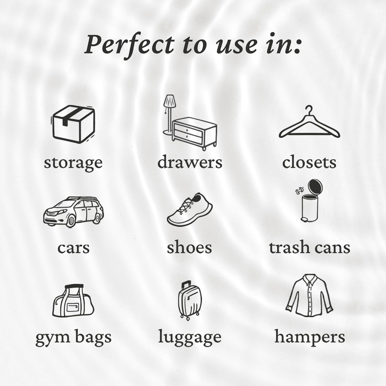 - Convenient, effective sachets that naturally eliminate tough odors for 15-30 days, leaving spaces smelling clean and fresh.
