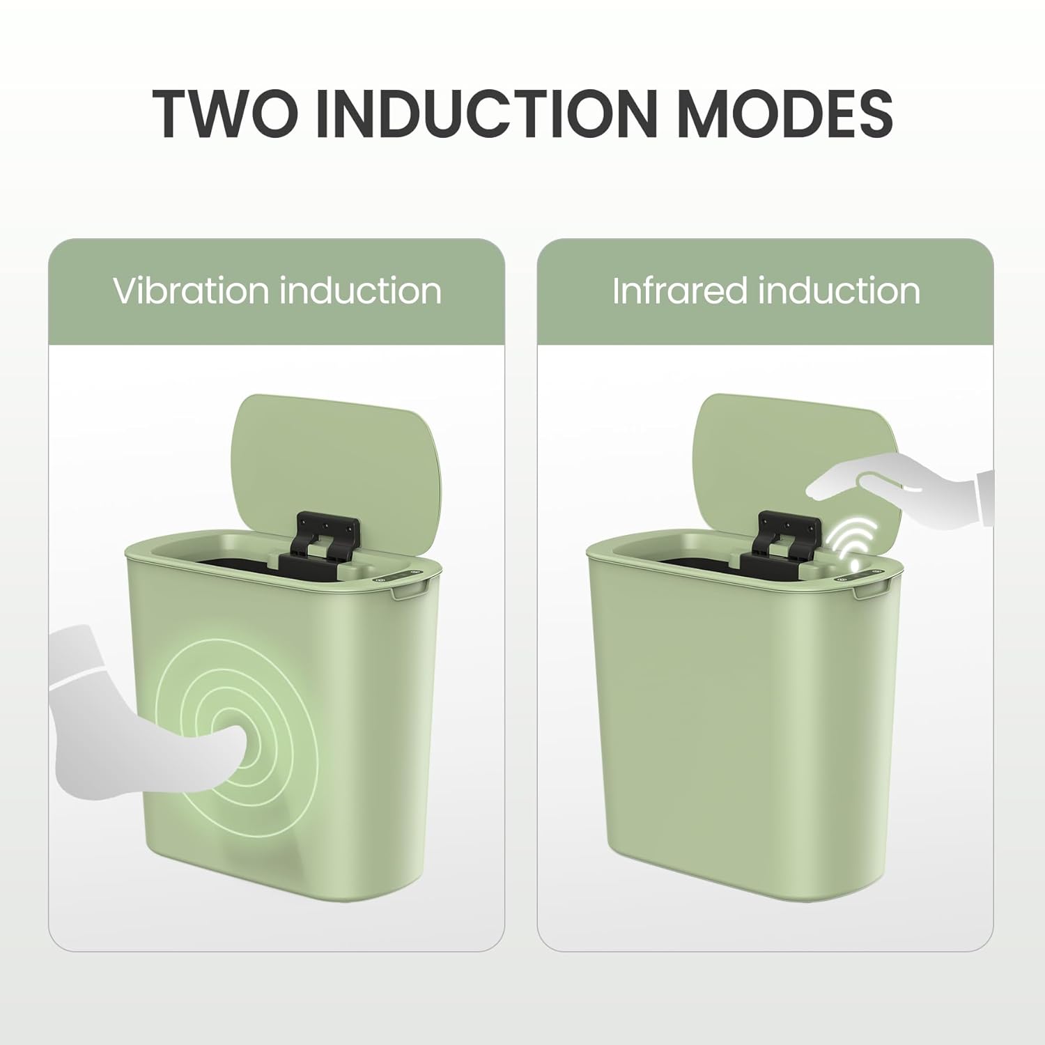 - Designed for Narrow Spaces: Our smart trash can has a slim shape that makes it a fit in a bathroom or wherever space is tight. Are you still annoyed that the narrow space in the room is being wasted? Use it to improve your space utilization