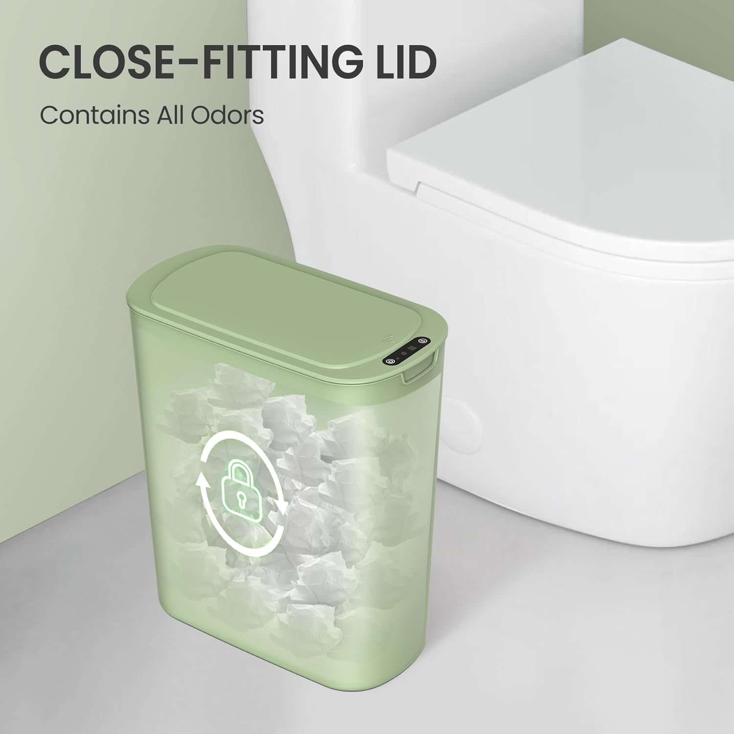 Cesun Automatic Motion Sensor Bathroom Trash Can with Lid, 2.6 Gallon Touchless Trash Bin, Smart Plastic Slim Garbage Can Small Green Wastebasket for Toilet, Office, rv, Bedroom, Living Room
