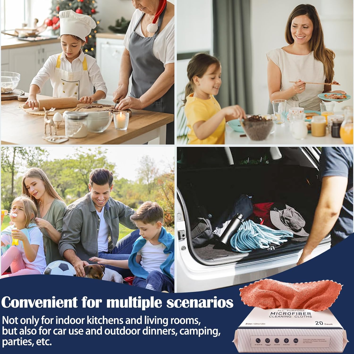 MRD's Home 20Pack Microfiber Cleaning Cloth in Bag,Multi-Purpose Reusable Cleaning Wipes Rags,Lint Free,Scratch & Streak-Free Cloth for Car,Small Microfiber Towels for House Wash,12" x 12"(Orange)