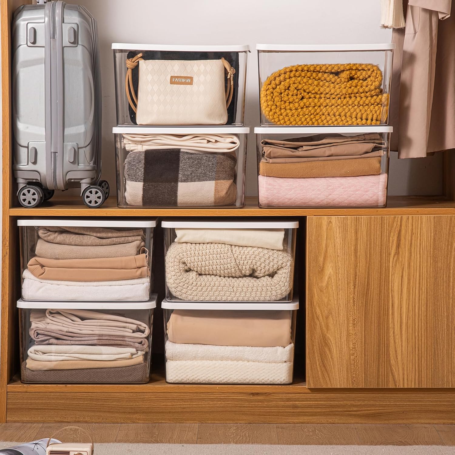 - 4. These large storage boxes with lids are perfect for sorting and storing clothes, food, shoes, toys, books, scarves, and more. Providing dust protection, the stackable design will fully utilize your closet or other space.